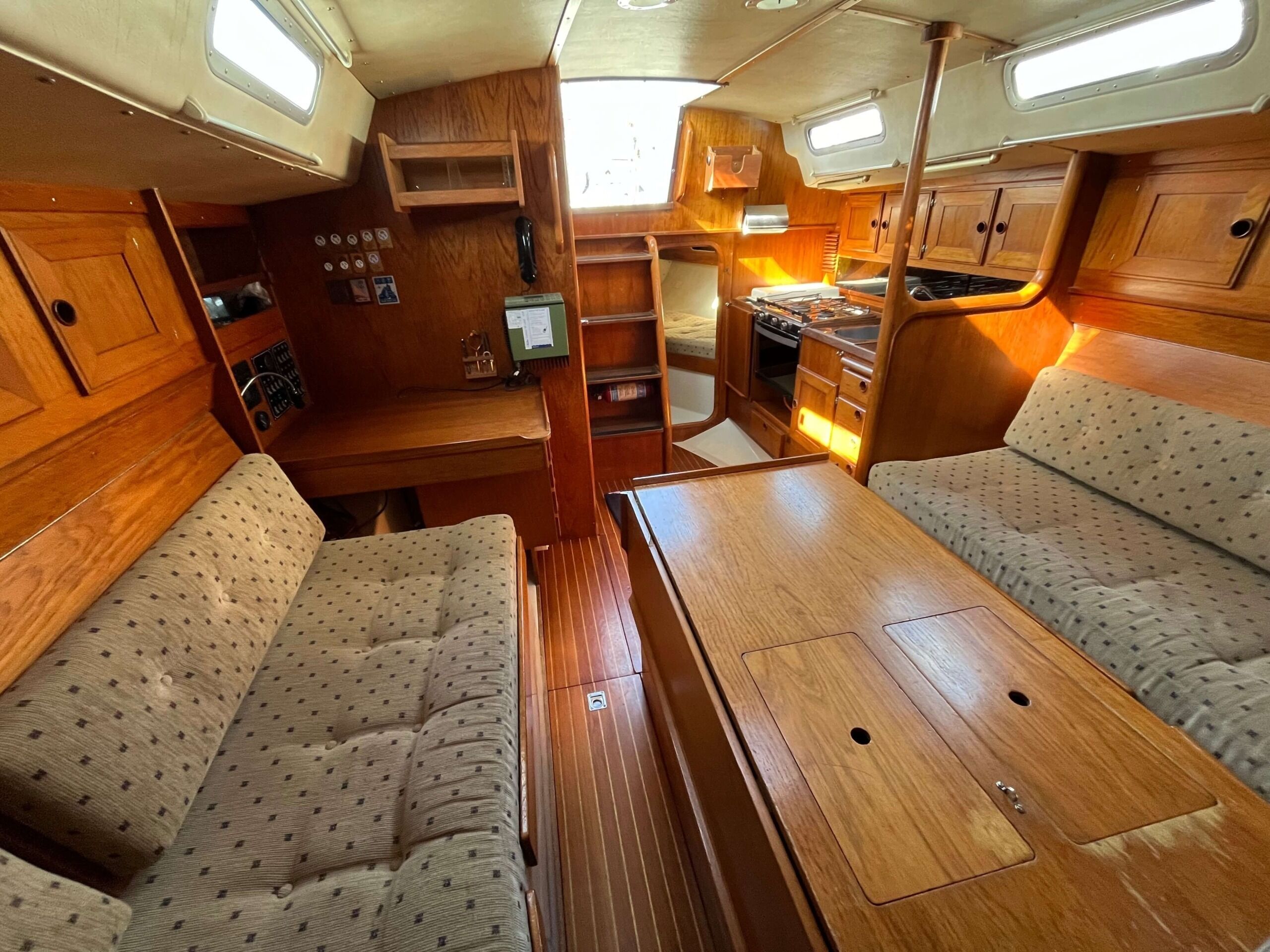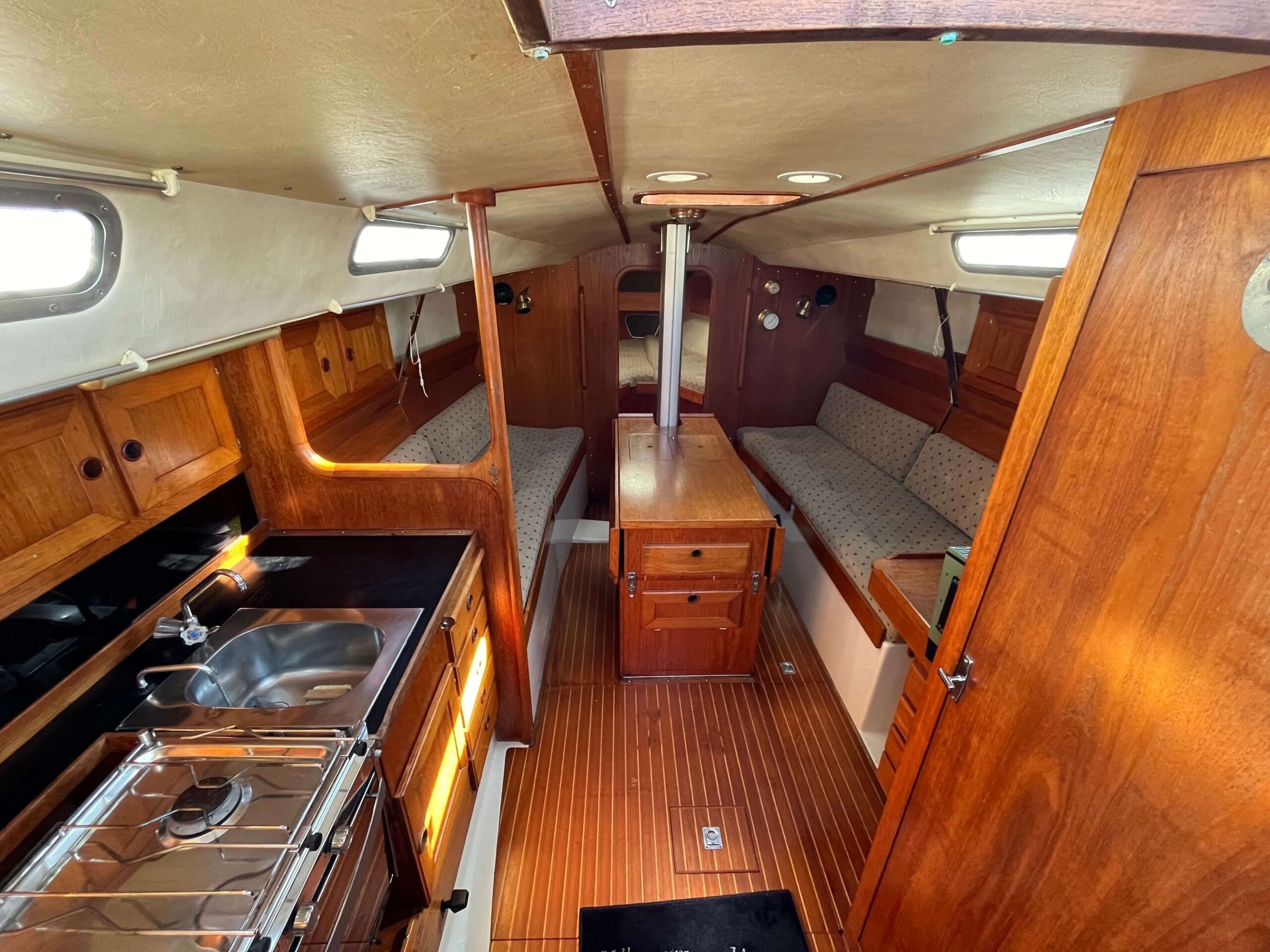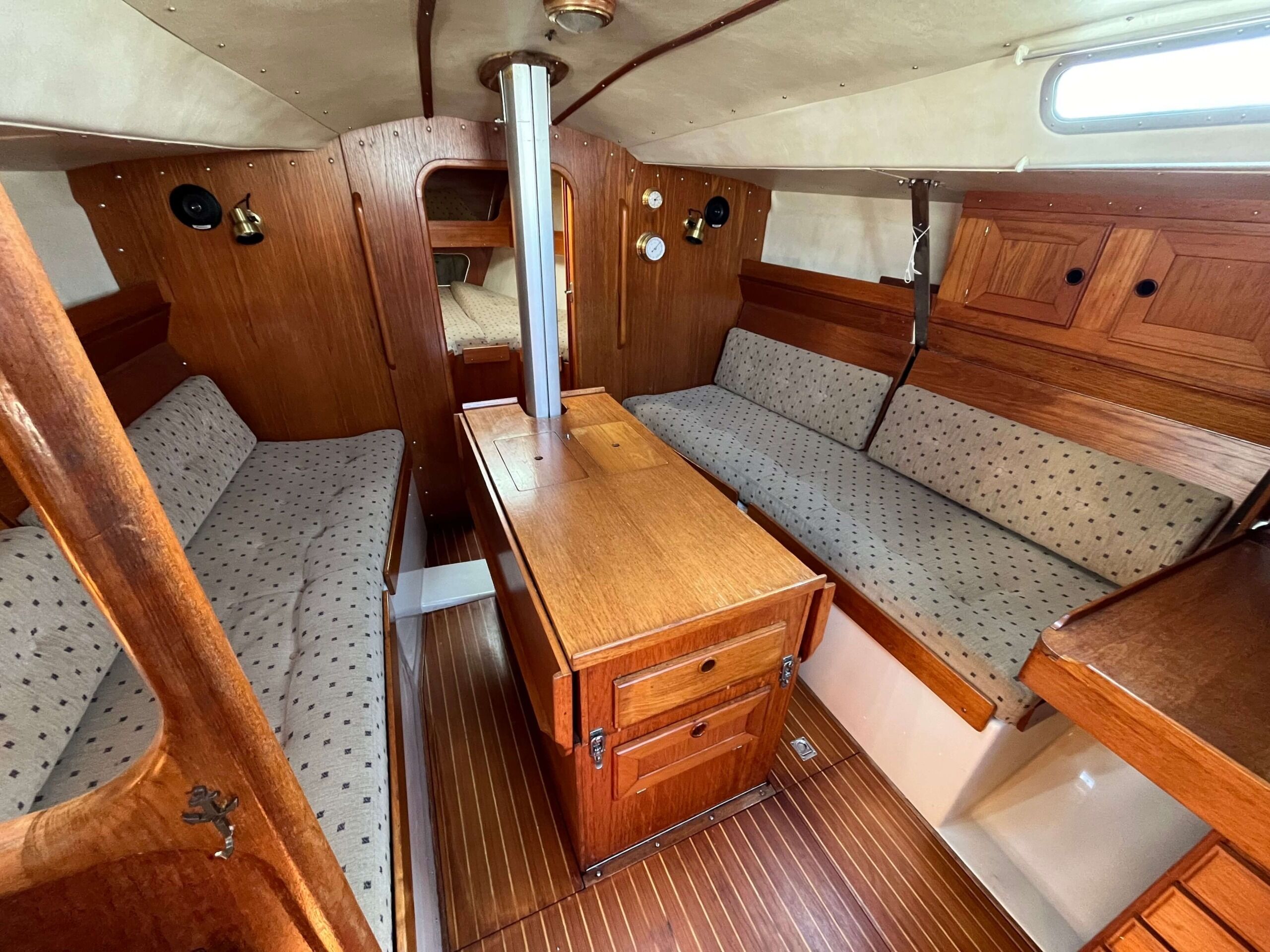 Om læ er båden indrettet med en stor salon med to store sofaer på hver side af et stort sofabord. Godt pantry, forkahyt med sovepladser, og agter kahyt under cockpittet med plads til to. Albin Stratus er designet af Peter Norlin og er en søstærk og meget velsejlende havkrydser.