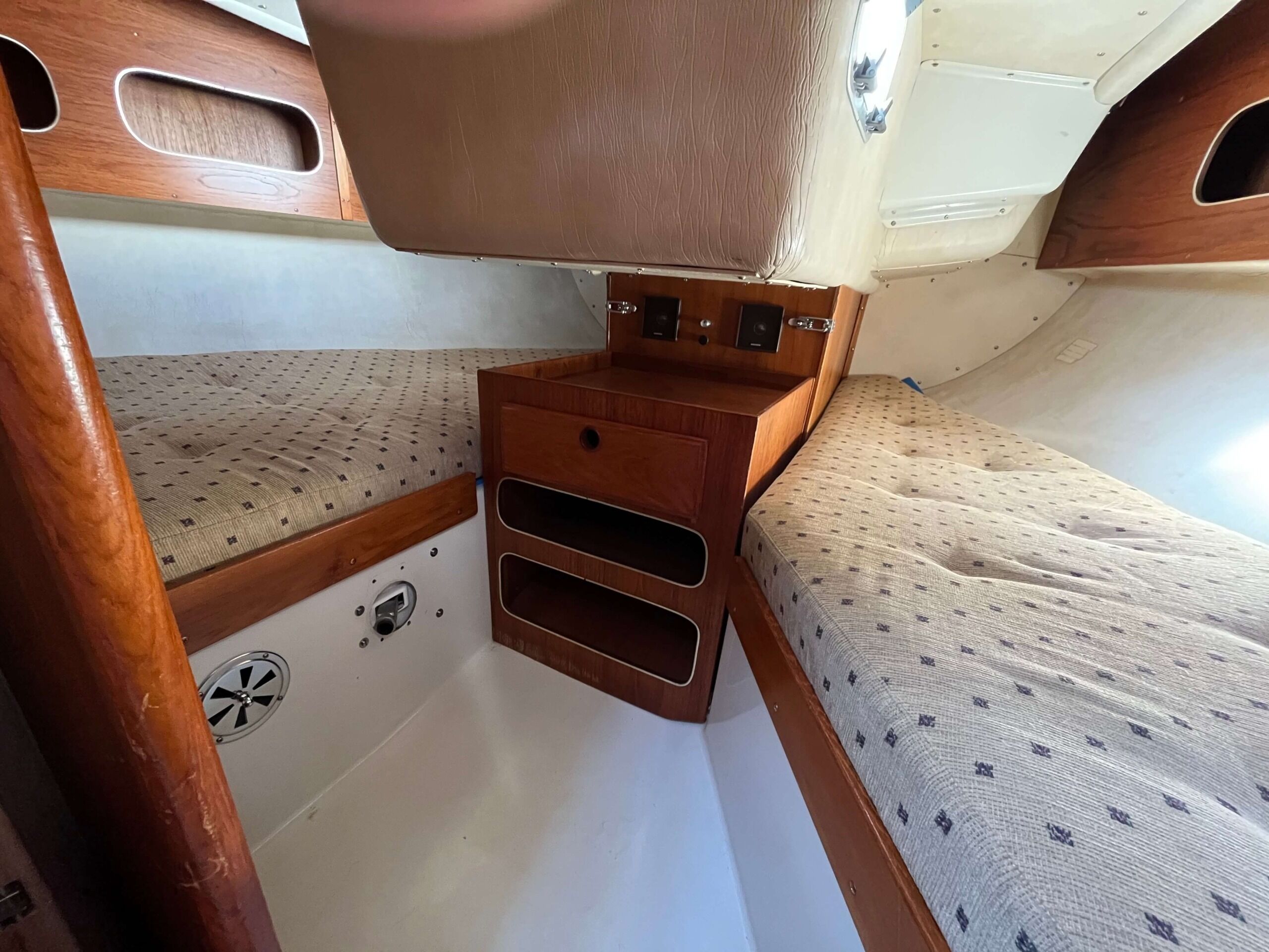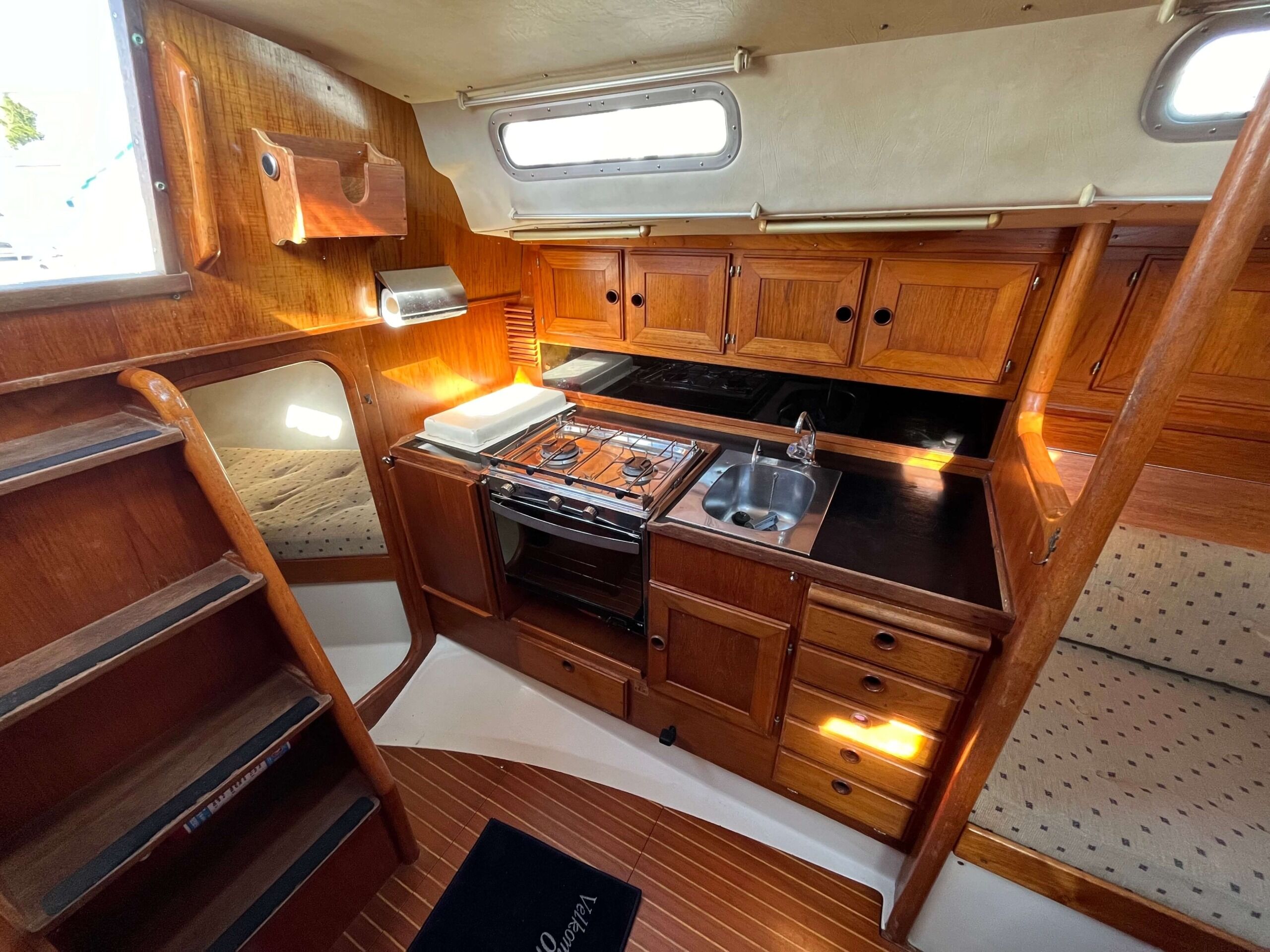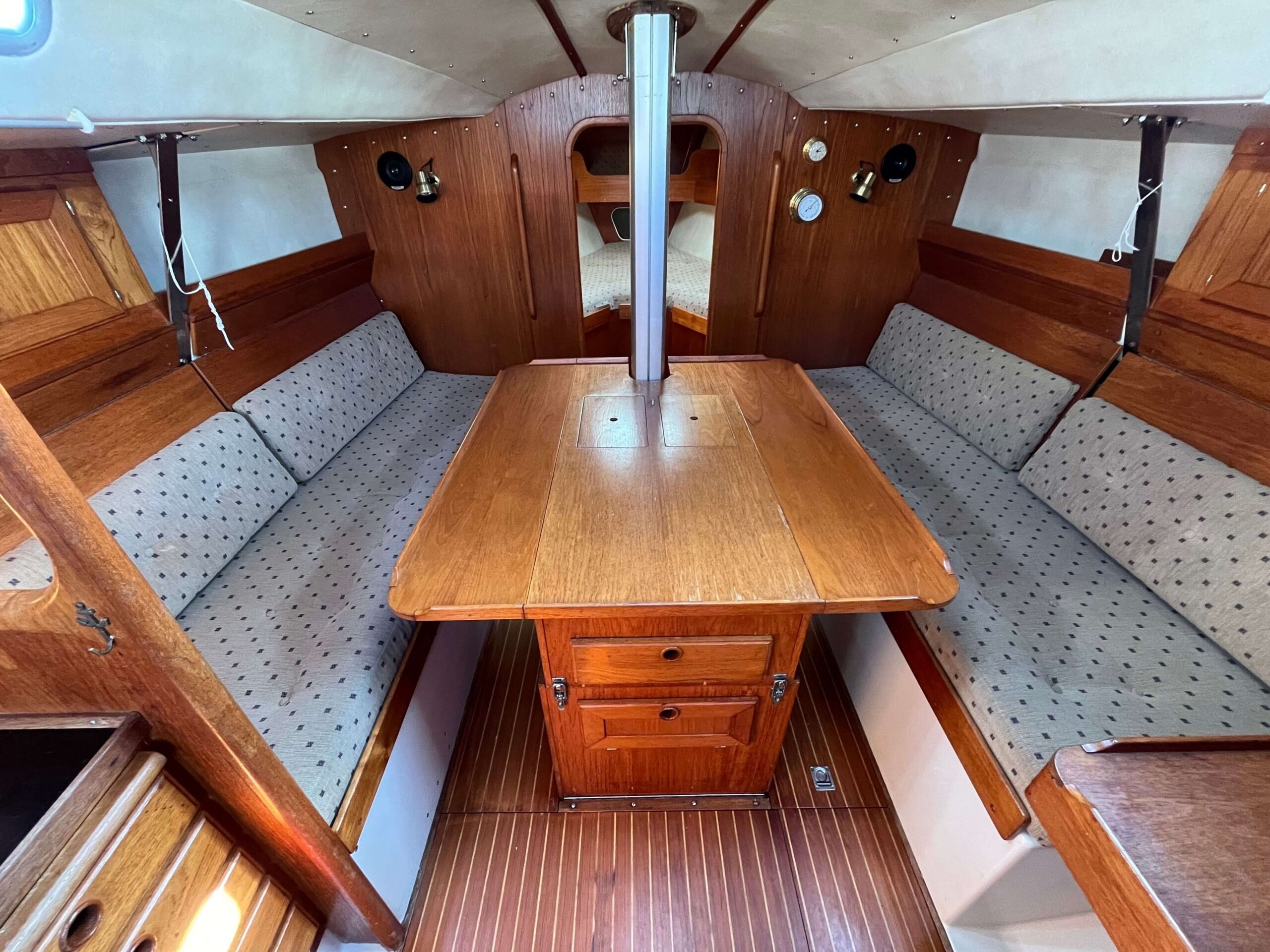 Om læ er båden indrettet med en stor salon med to store sofaer på hver side af et stort sofabord. Godt pantry, forkahyt med sovepladser, og agter kahyt under cockpittet med plads til to. Albin Stratus er designet af Peter Norlin og er en søstærk og meget velsejlende havkrydser.