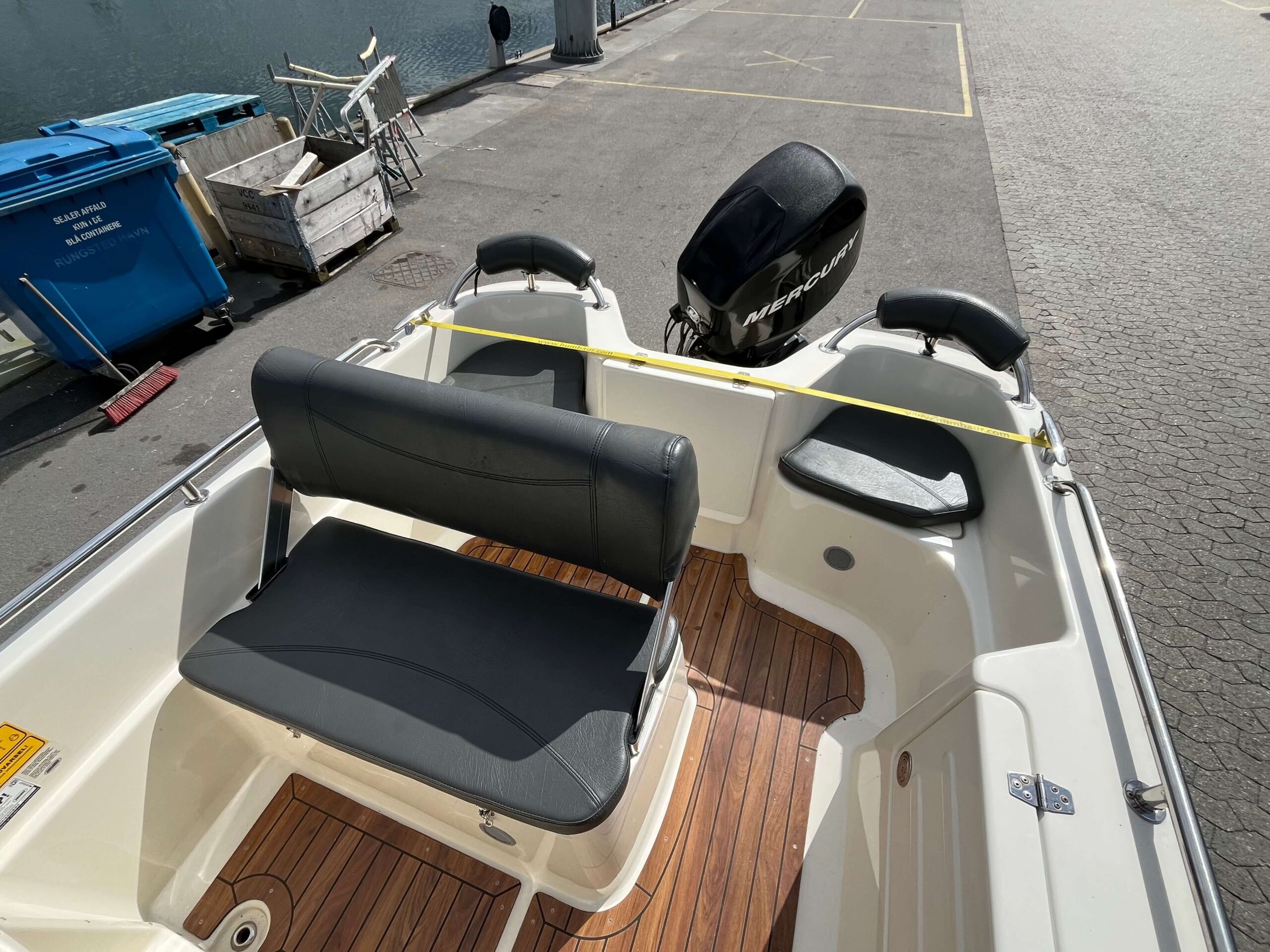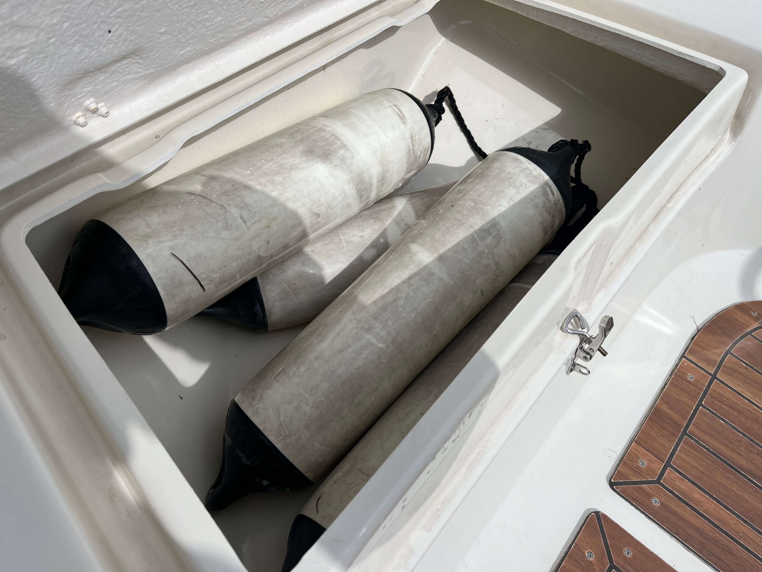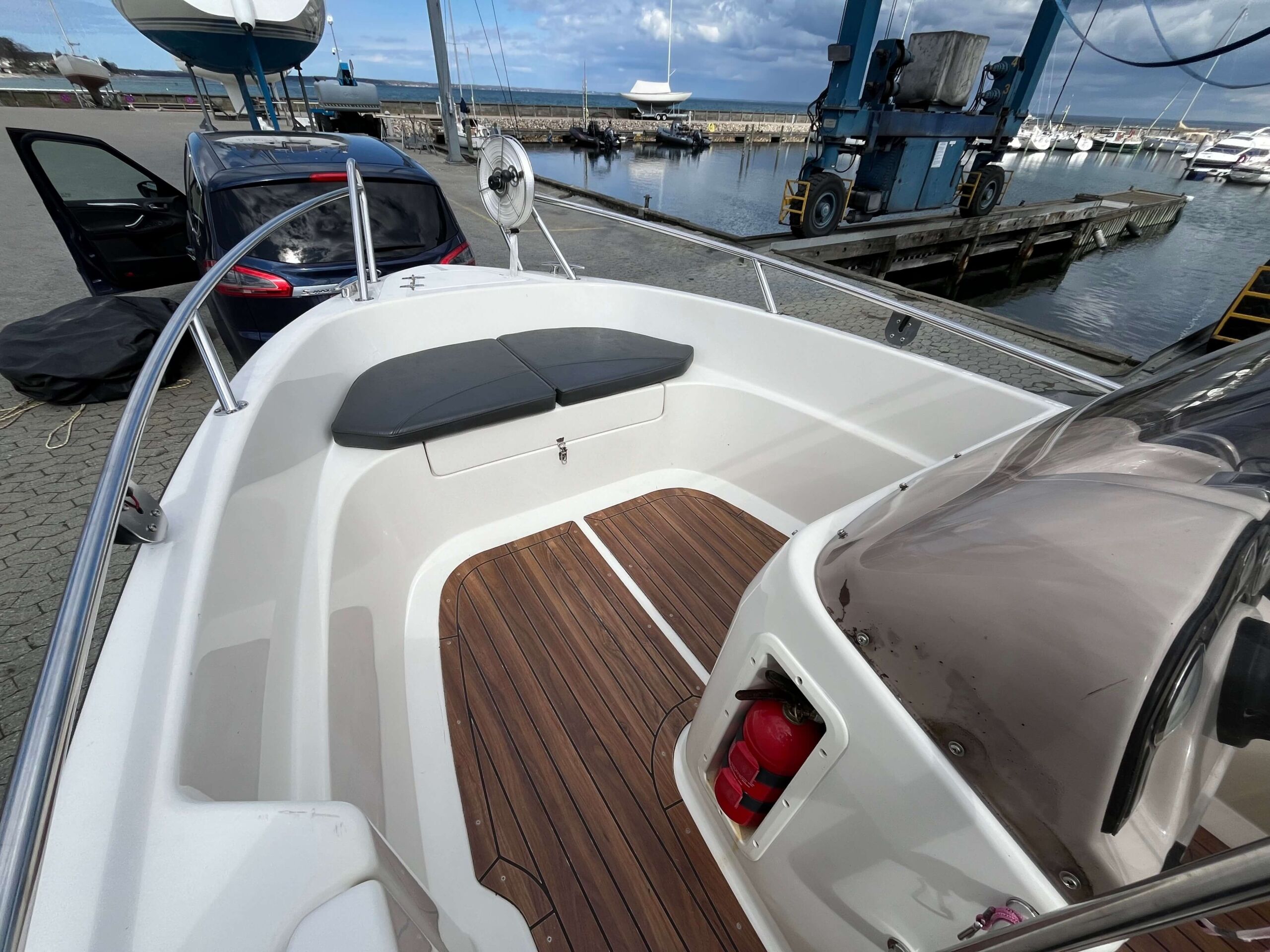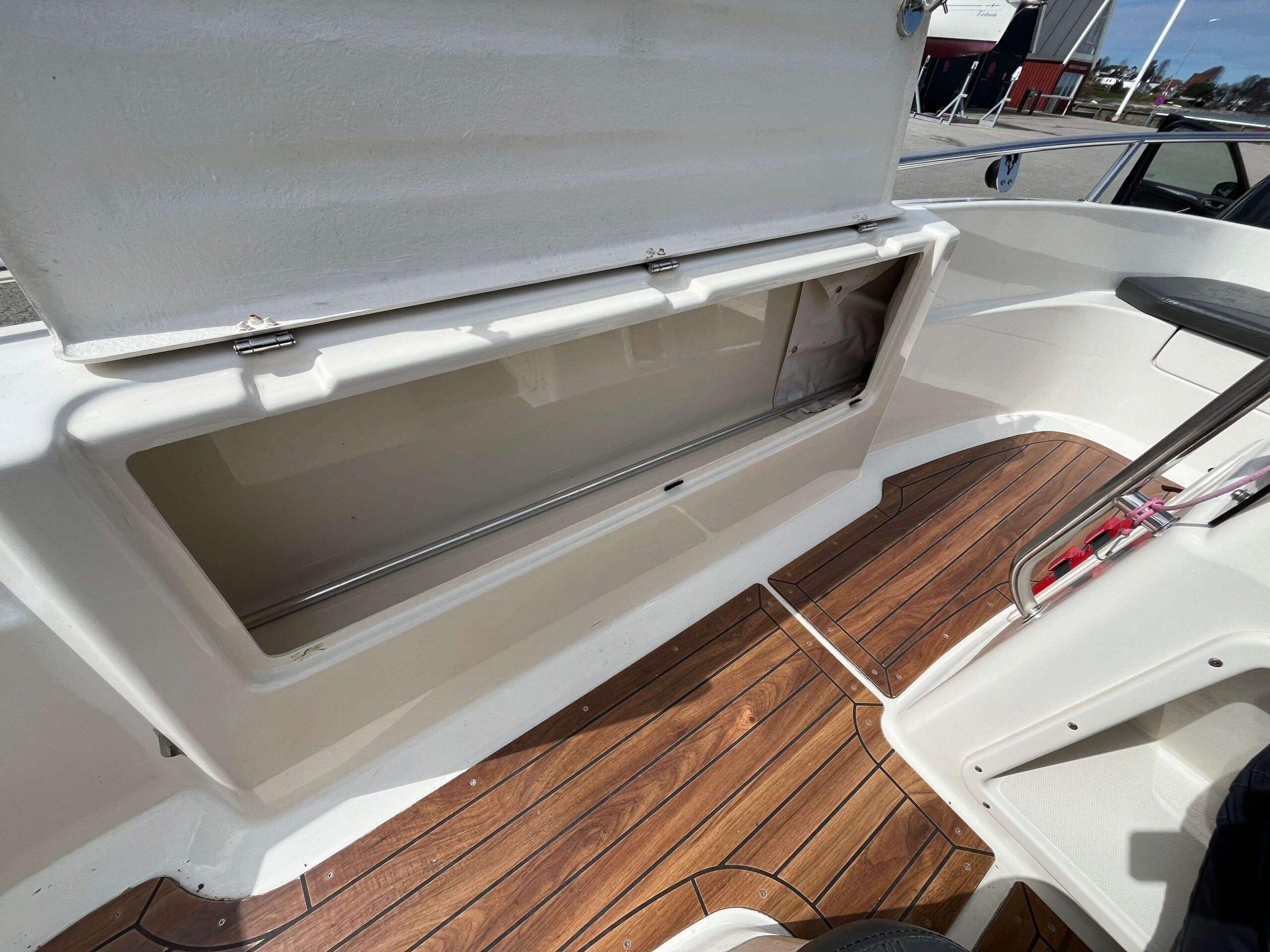 Endelig er der på “fordækket” et separat drænet rum til lidt ankergrej. I bagbords side midtskibs er der monteret et rum, hvor der er plads til vandski, fiskegrej, kolde drinks m.m.