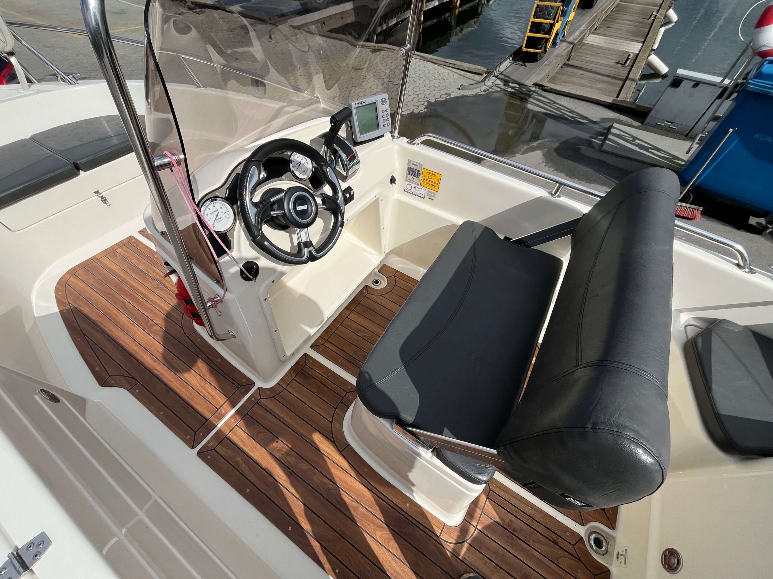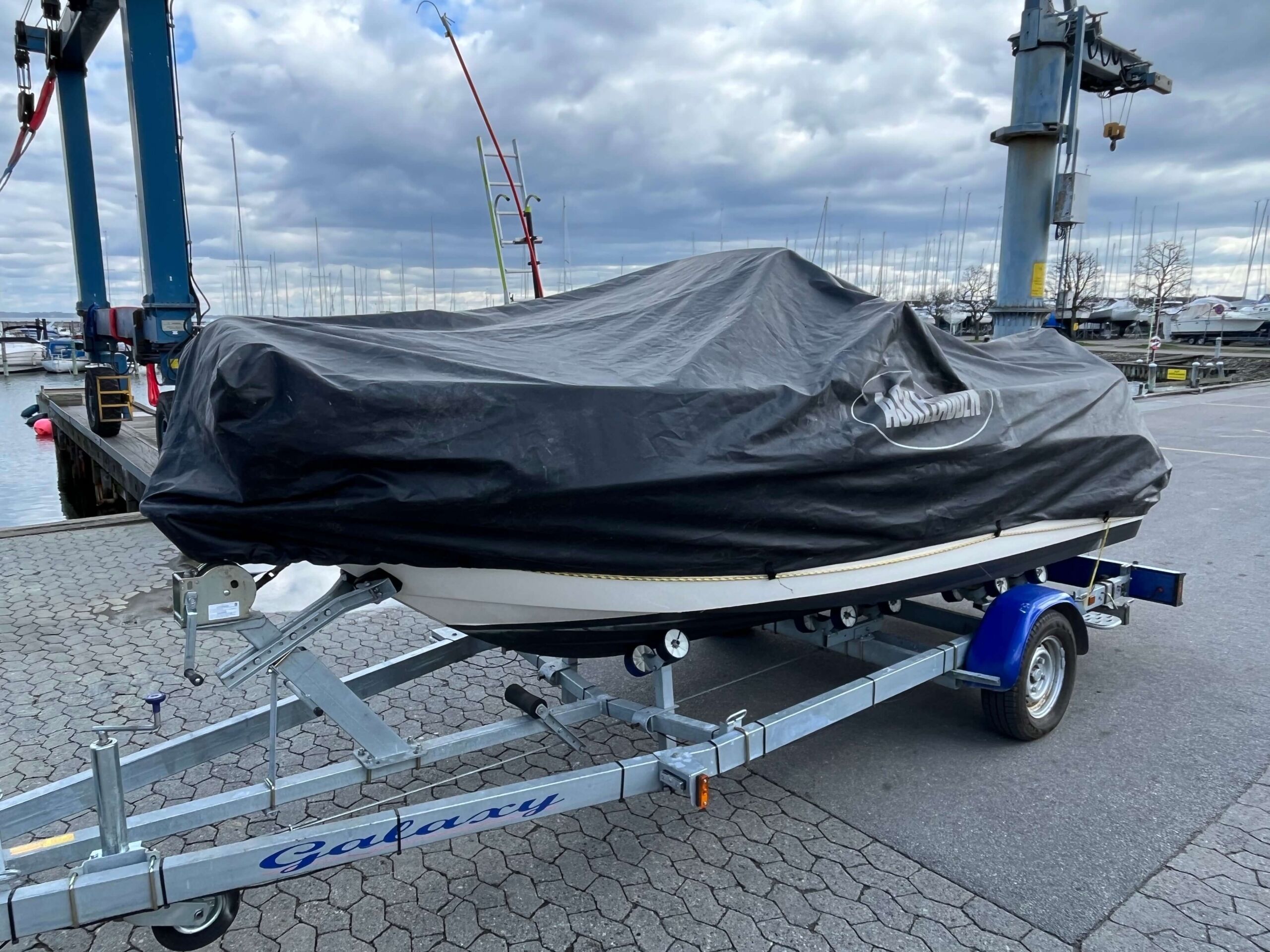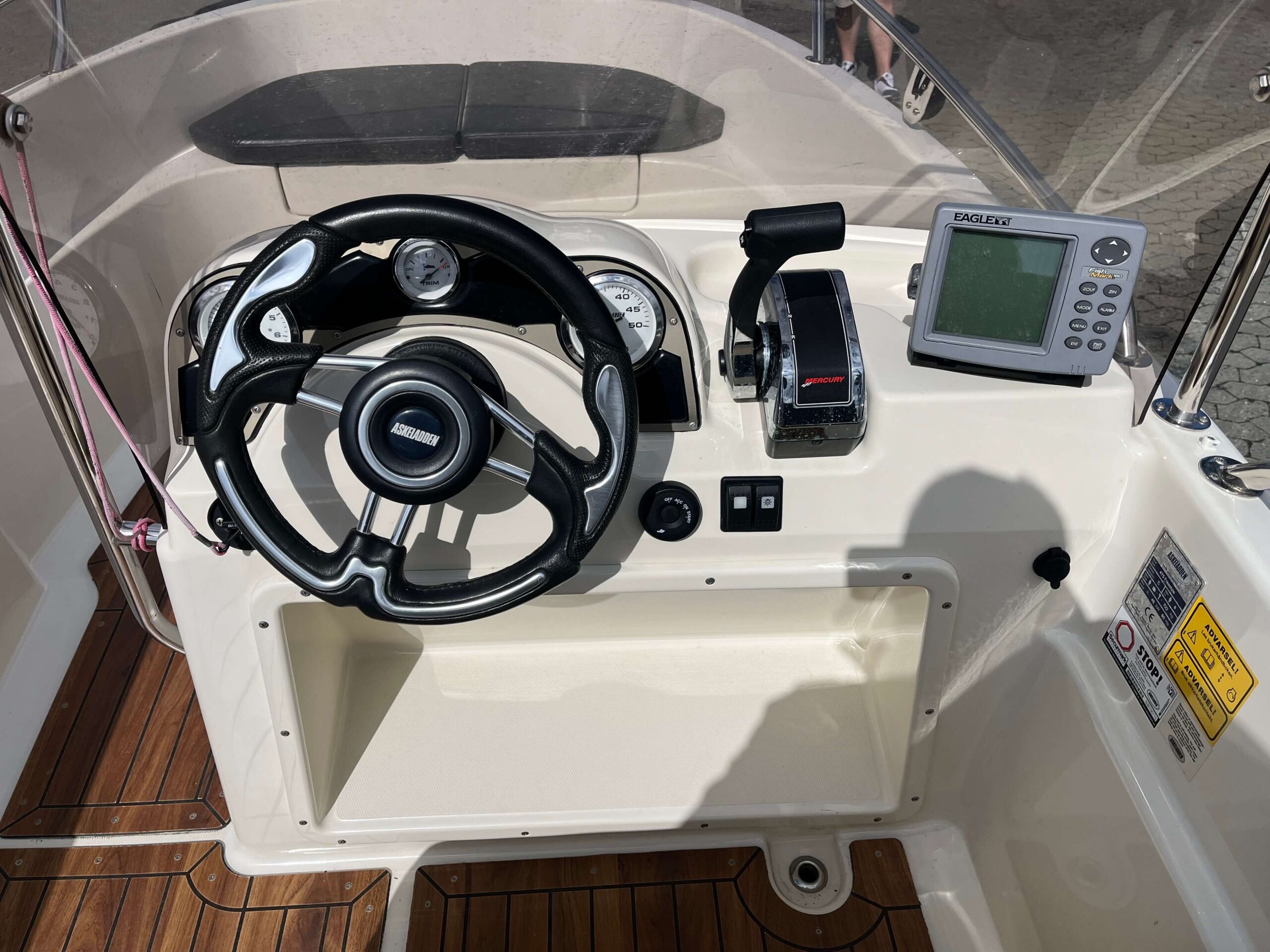 Båden er med Navigationslys og Instrumentering: Fartmåler (knob), omdrejningstæller, trimmåler. Endvidere GPS + Plotter samt transport/vinterkaleche.