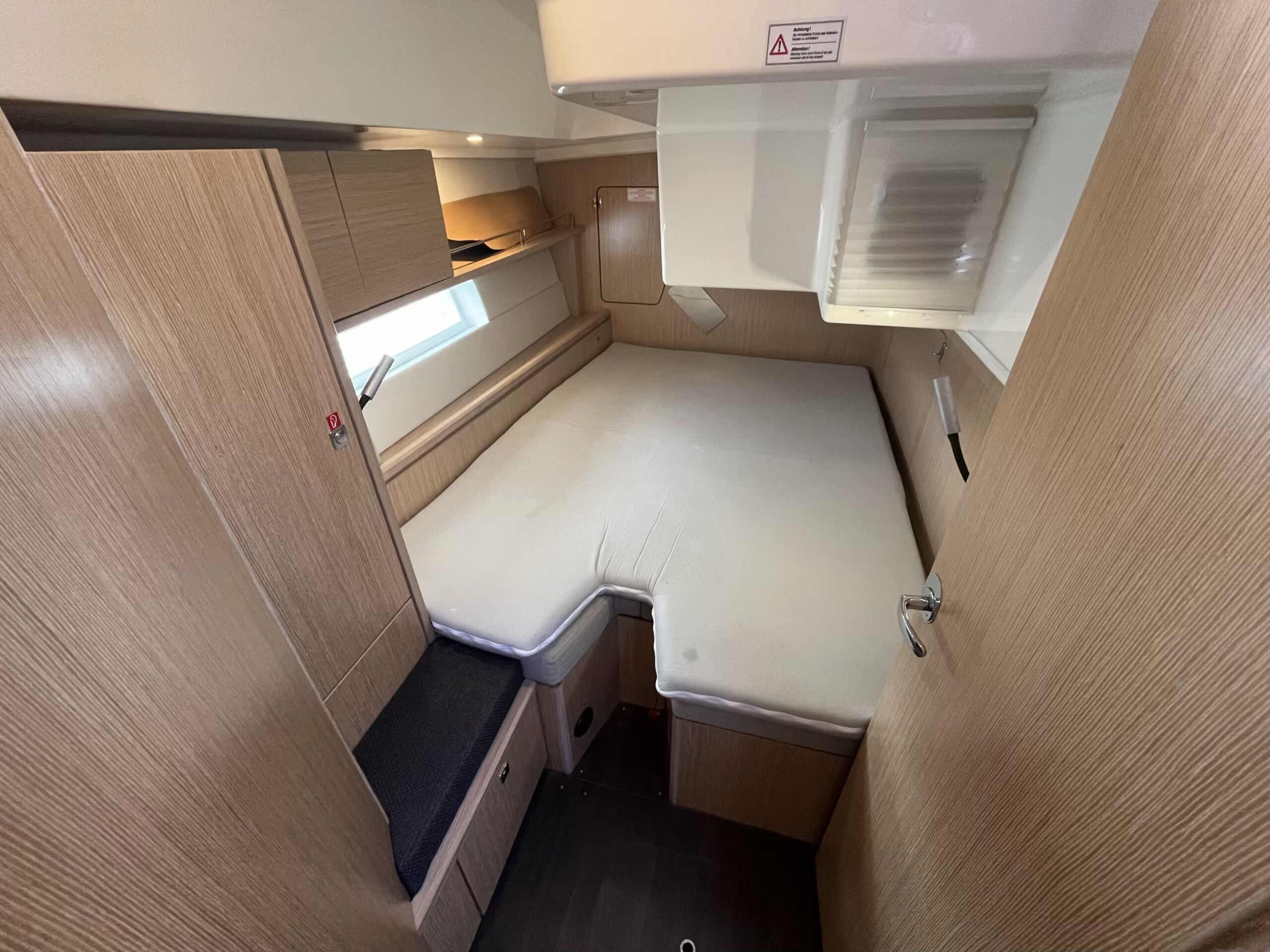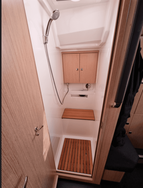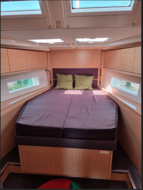 3-kabiners version alle med specialsyede topmadrasser, 1 x badeværelse inkl. toilet, 1 x separat toilet, 1 x separat brusekabine – ideel til familien eller længere ophold