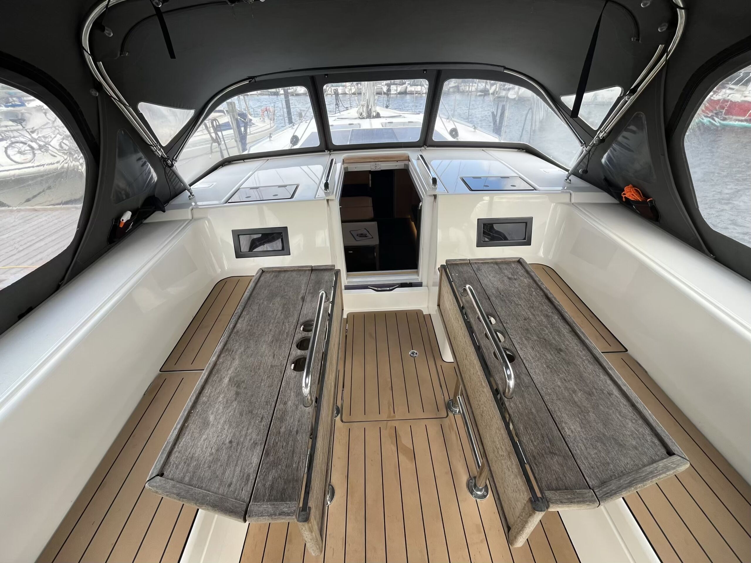 - Cockpit stor elektrisk badeplatform, cockpitbord der kan konverteres til solseng samt køleboks