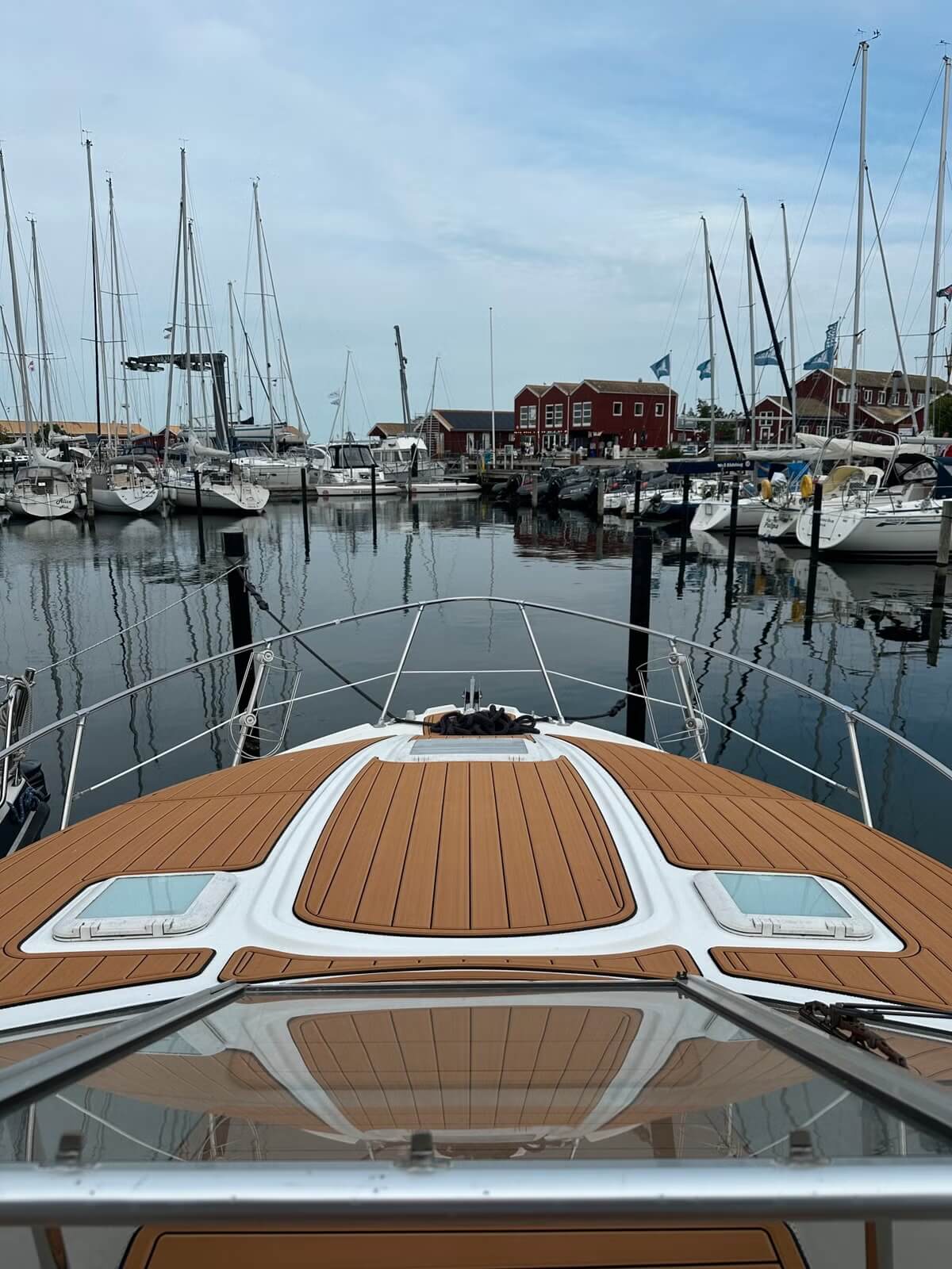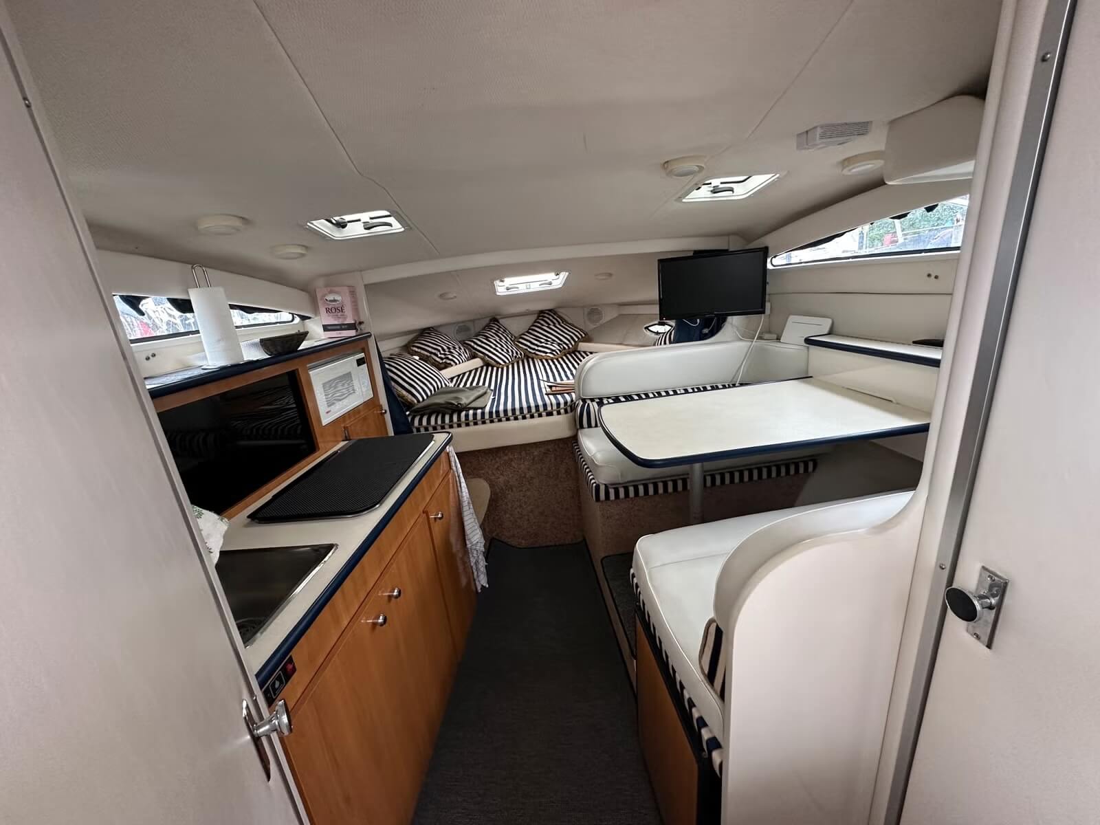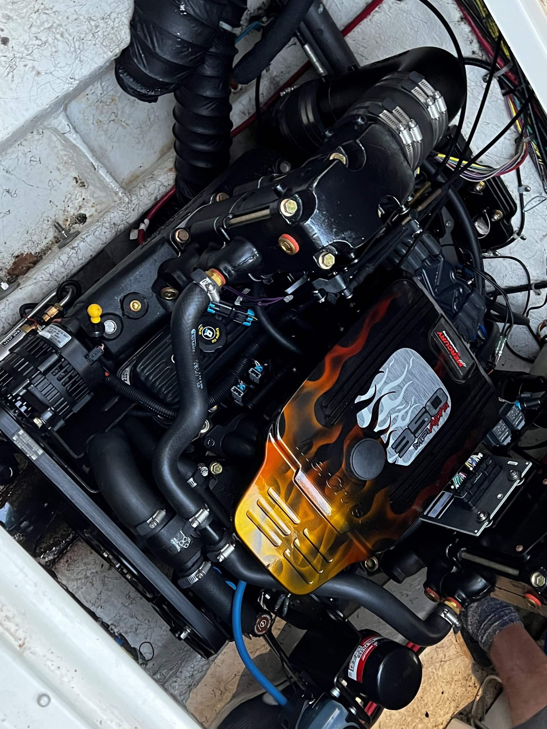 Denne konkrete båd fremstår løbende opdateret med væsentlige investeringer de senere år. I 2022 er der installeret en ny MerCruiser MPI 350 motor, og i 2021 er der monteret nyt Alpha-drev – Kun sejlet 50 timer siden! Nye marinebatterier i 2024, nyt køleskab i 2025 hvor der også blev monteret nyt teak-look foam dæk, som giver båden et løft både visuelt og funktionelt.