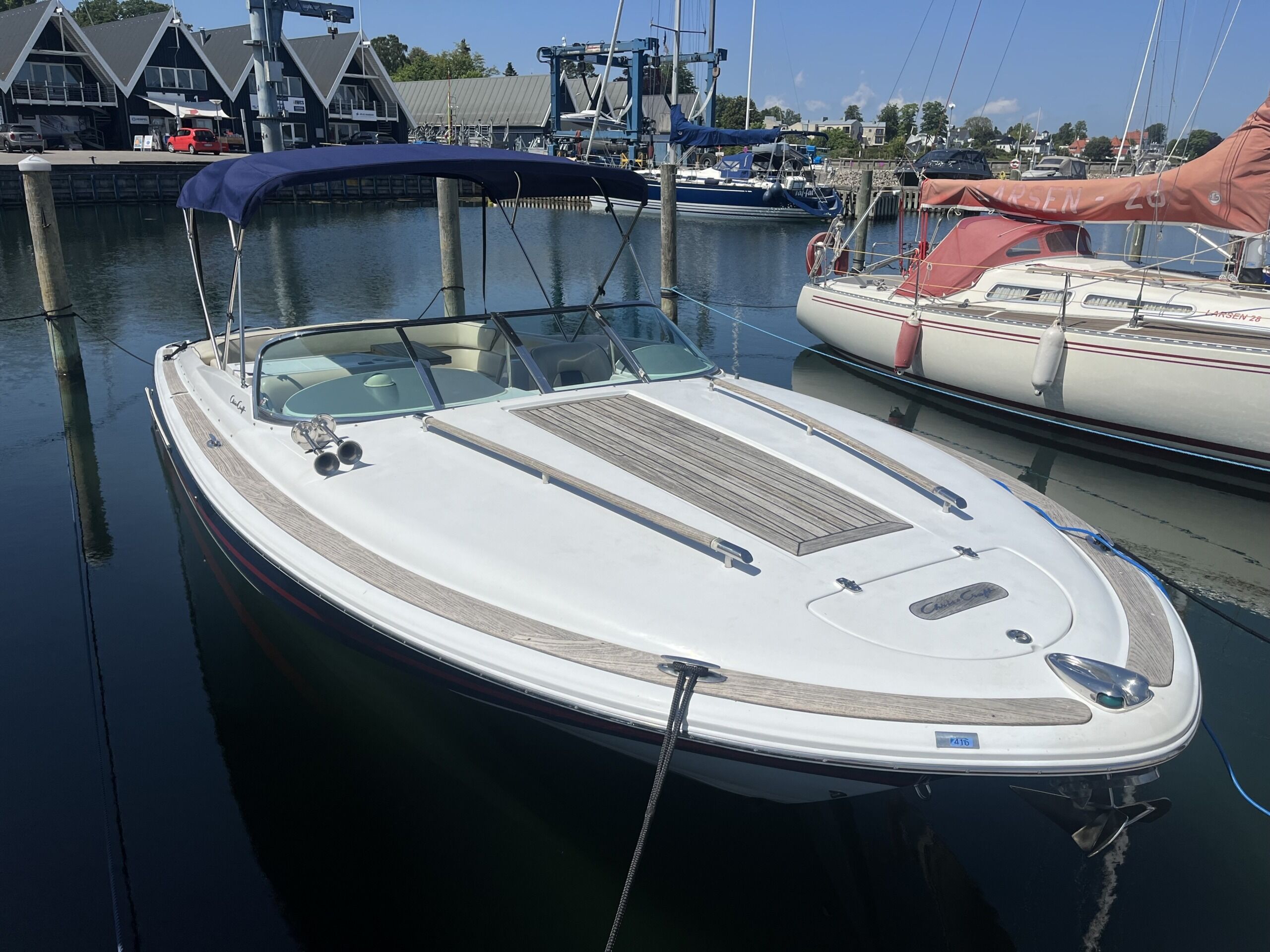 Chris Craft 28 Corsair fra 2004 i den smukke Heritage version. Båden er i den klassiske Midnight Blue farve og har 2 x Volvo Penta med duoprop og bovpropel med remote control for nem og enkel manøvrering. Chris Craft Corsair 28 er en stor, komfortabel og behagelig weekend cruiser, der kombinerer uovertruffen kvalitet med smukt håndværk. Heritage versionen har ekstra teak på fordækket, i cockpittet, kahytsdøren m.v. Båden er kendt for sine fantastiske sejlegenskaber og sine smukke linjer. Det er weekend cruiseren, hvor du kan nyde livet på vandet med venner og familie på 1. klasse med mulighed for en enkelt overnatning.