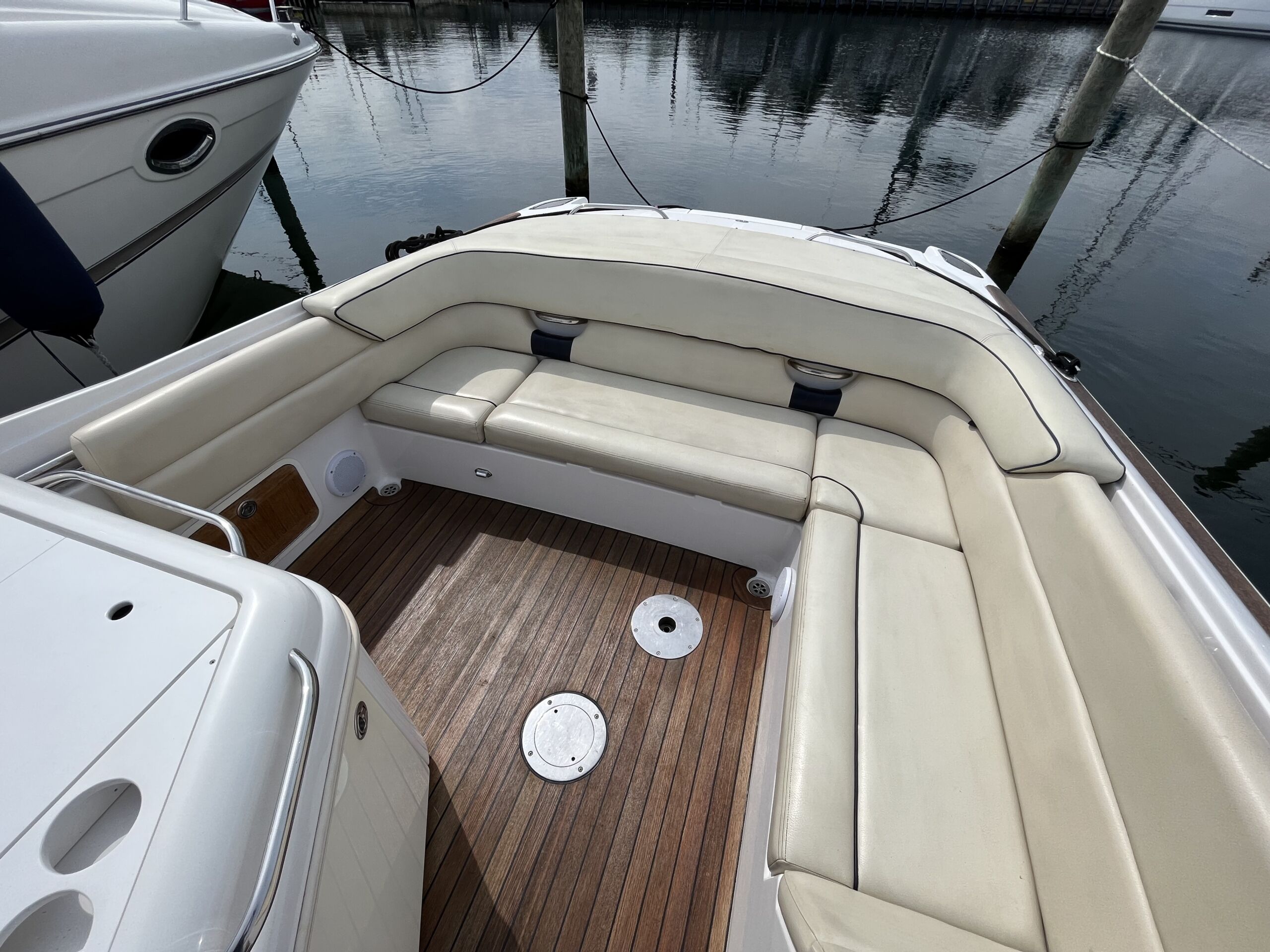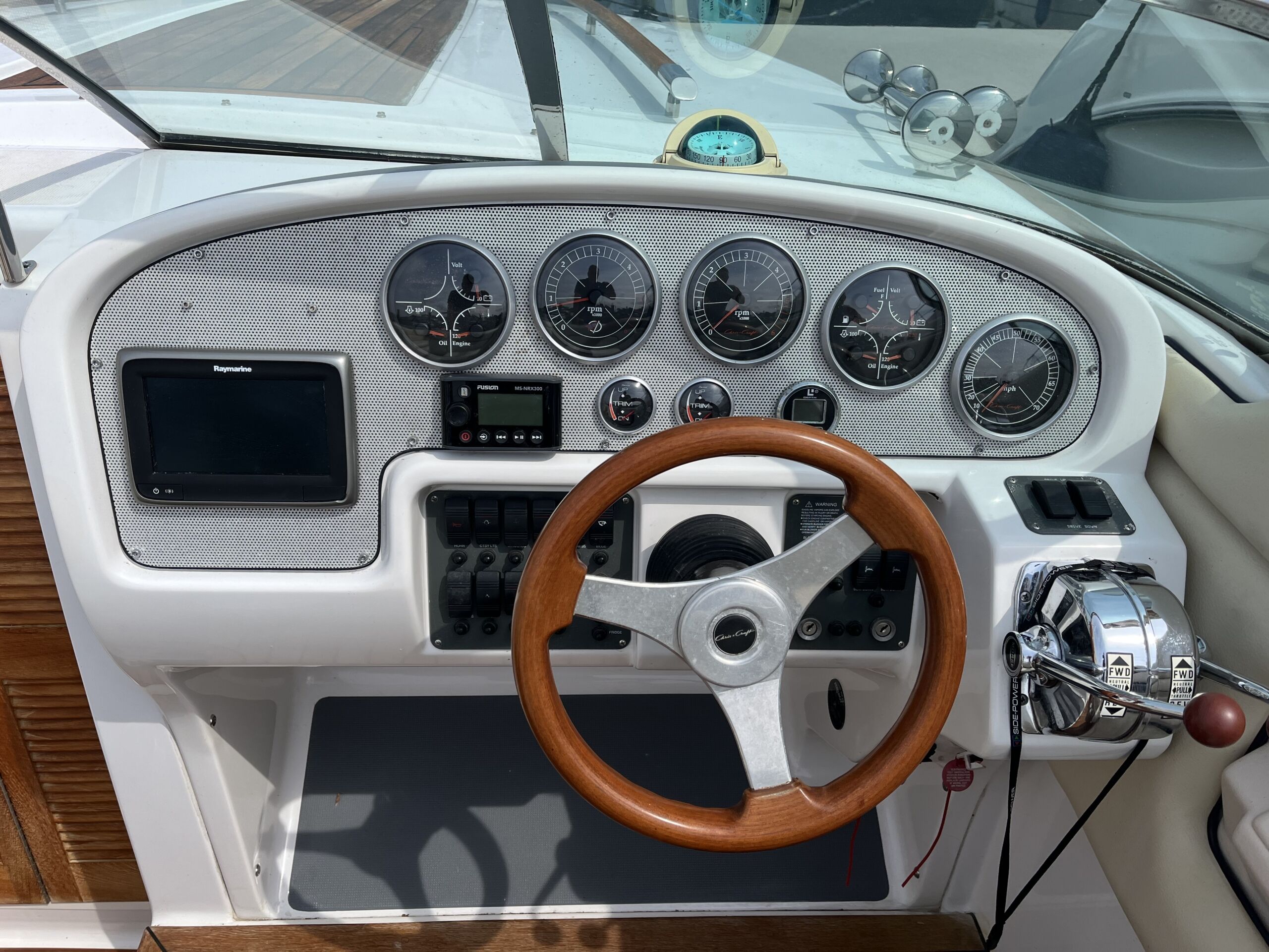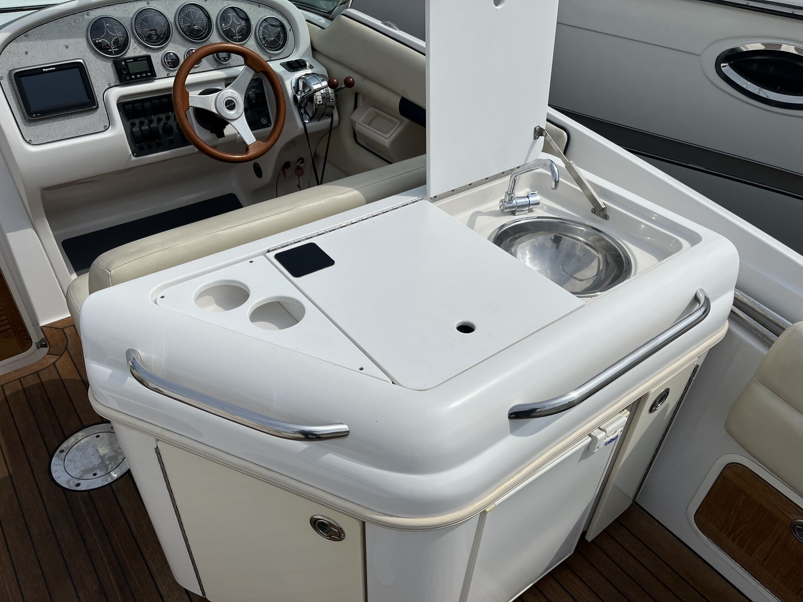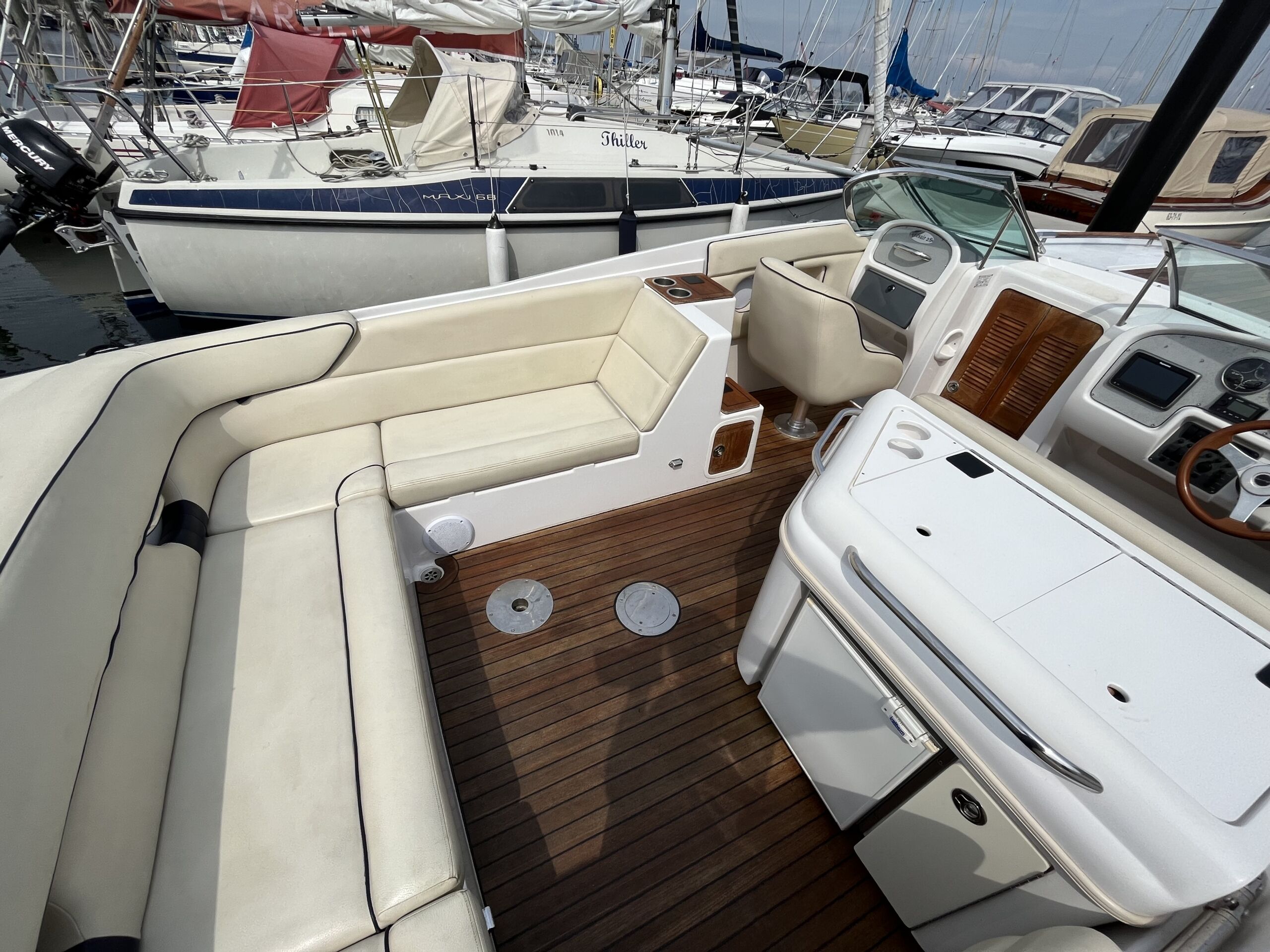Chris Craft 28 Corsair fra 2004 i den smukke Heritage version. Båden er i den klassiske Midnight Blue farve og har 2 x Volvo Penta med duoprop og bovpropel med remote control for nem og enkel manøvrering. Chris Craft Corsair 28 er en stor, komfortabel og behagelig weekend cruiser, der kombinerer uovertruffen kvalitet med smukt håndværk. Heritage versionen har ekstra teak på fordækket, i cockpittet, kahytsdøren m.v. Båden er kendt for sine fantastiske sejlegenskaber og sine smukke linjer. Det er weekend cruiseren, hvor du kan nyde livet på vandet med venner og familie på 1. klasse med mulighed for en enkelt overnatning.