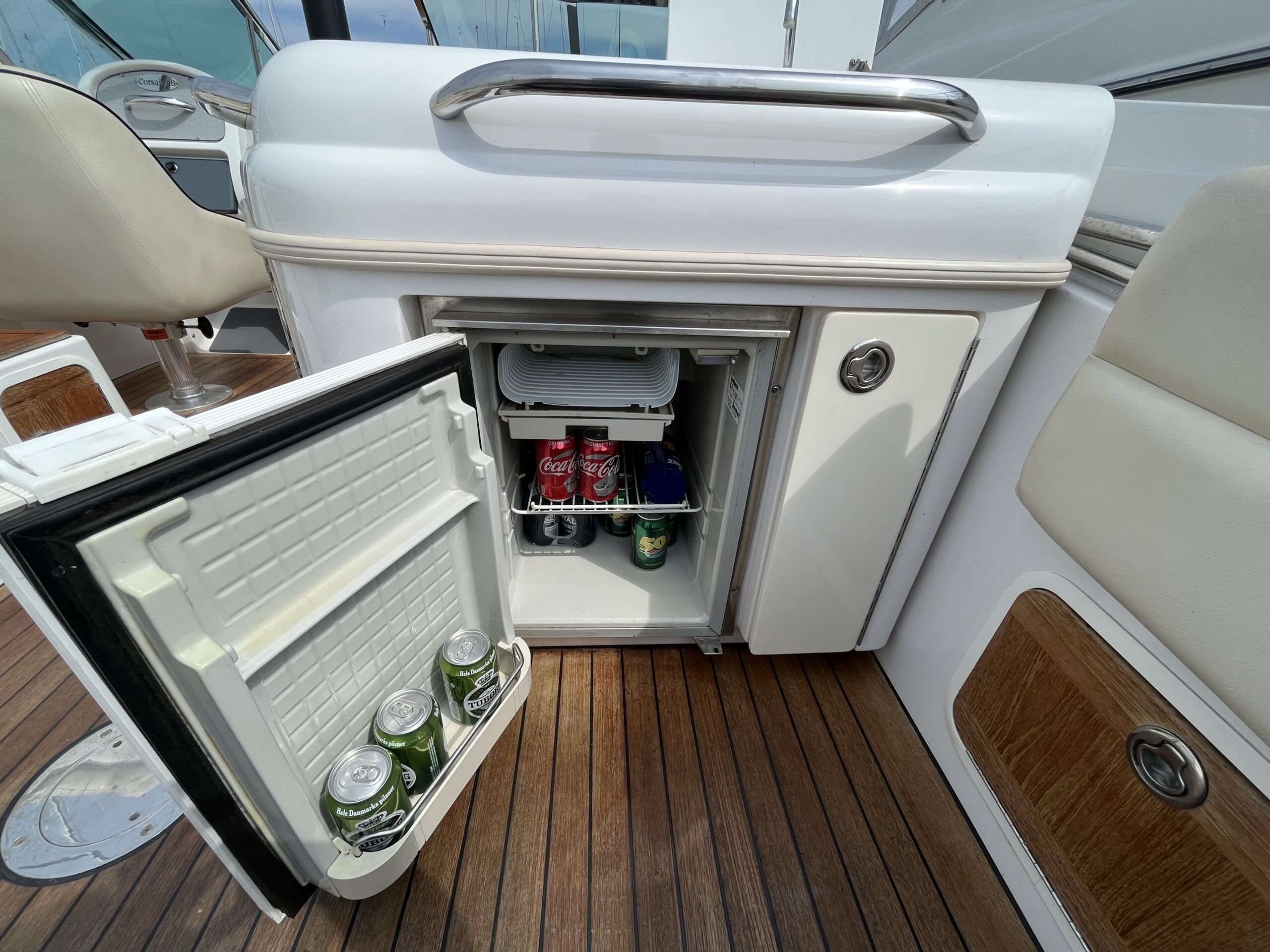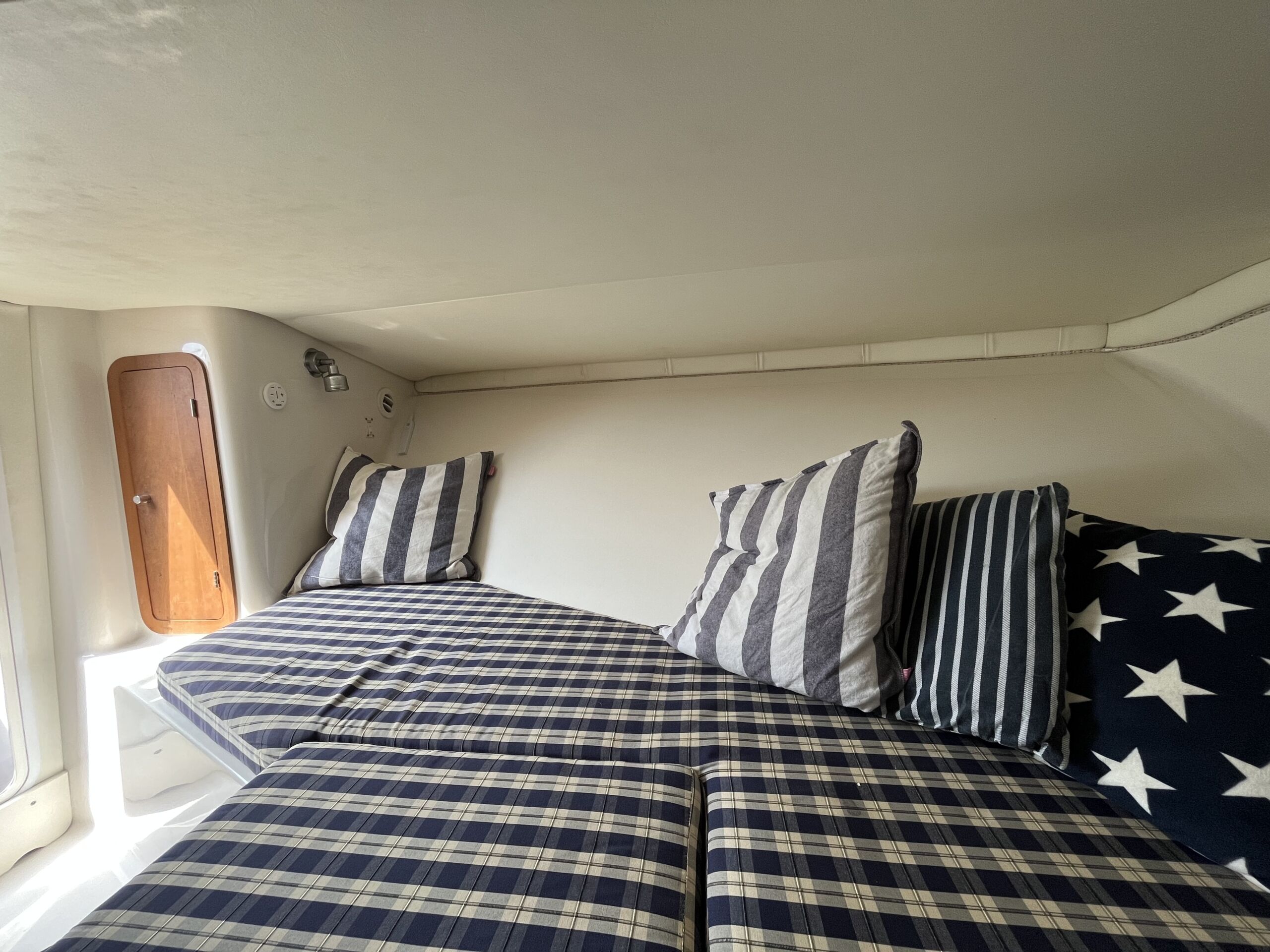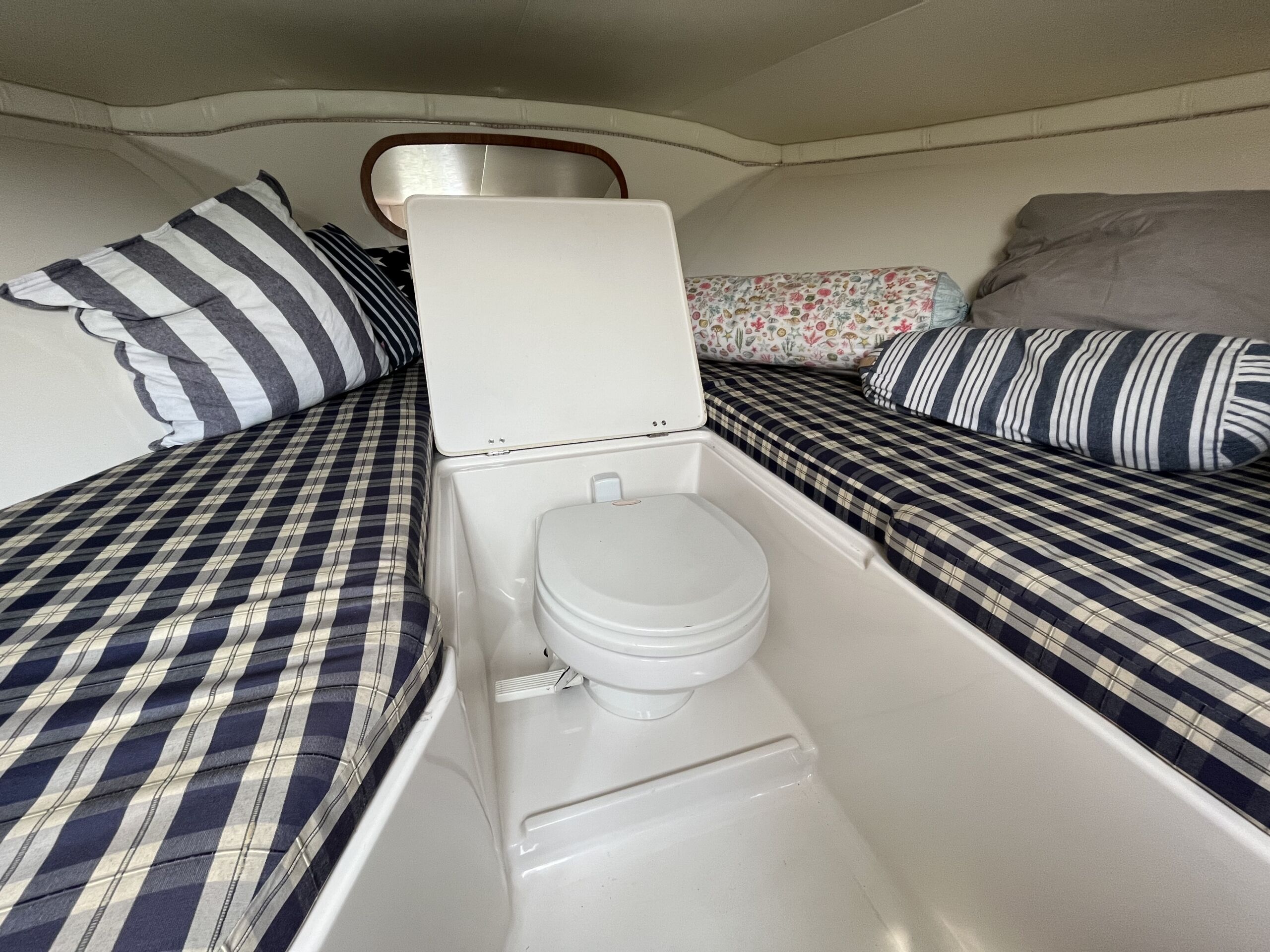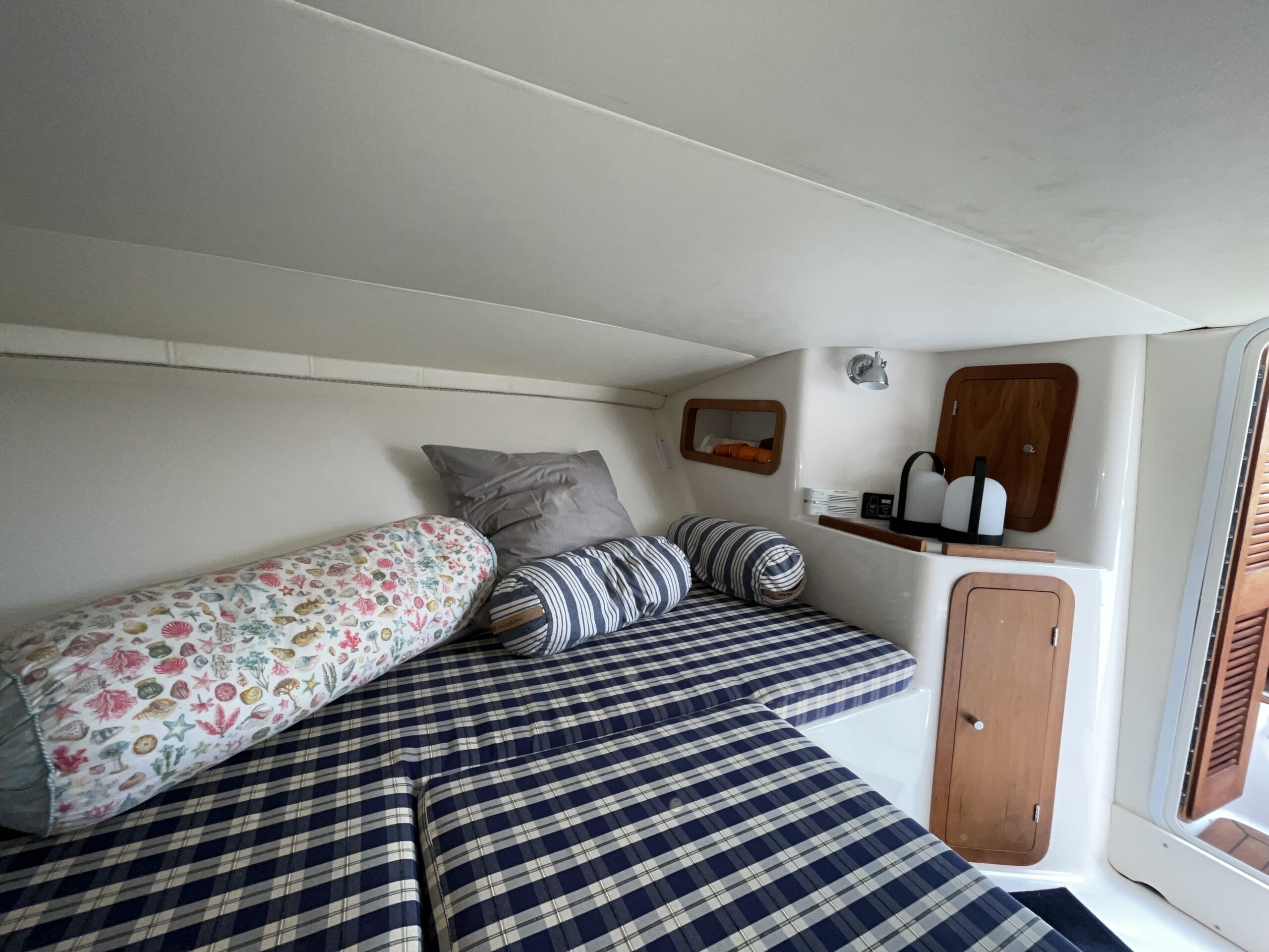I cockpittet er der stor L-sofa agter med lounge agtig ryg i bagbord til behagelig afslapning. Cockpitbord og wetbar med køleskab og vask. Cockpittet er belagt med teak og førersædet er stort nok til, at to personer kan sidde ved siden af hinanden. I kahytten er der installeret et rigtigt marinetoilet og der er god plads til, at man snildt kan overnatte to personer.