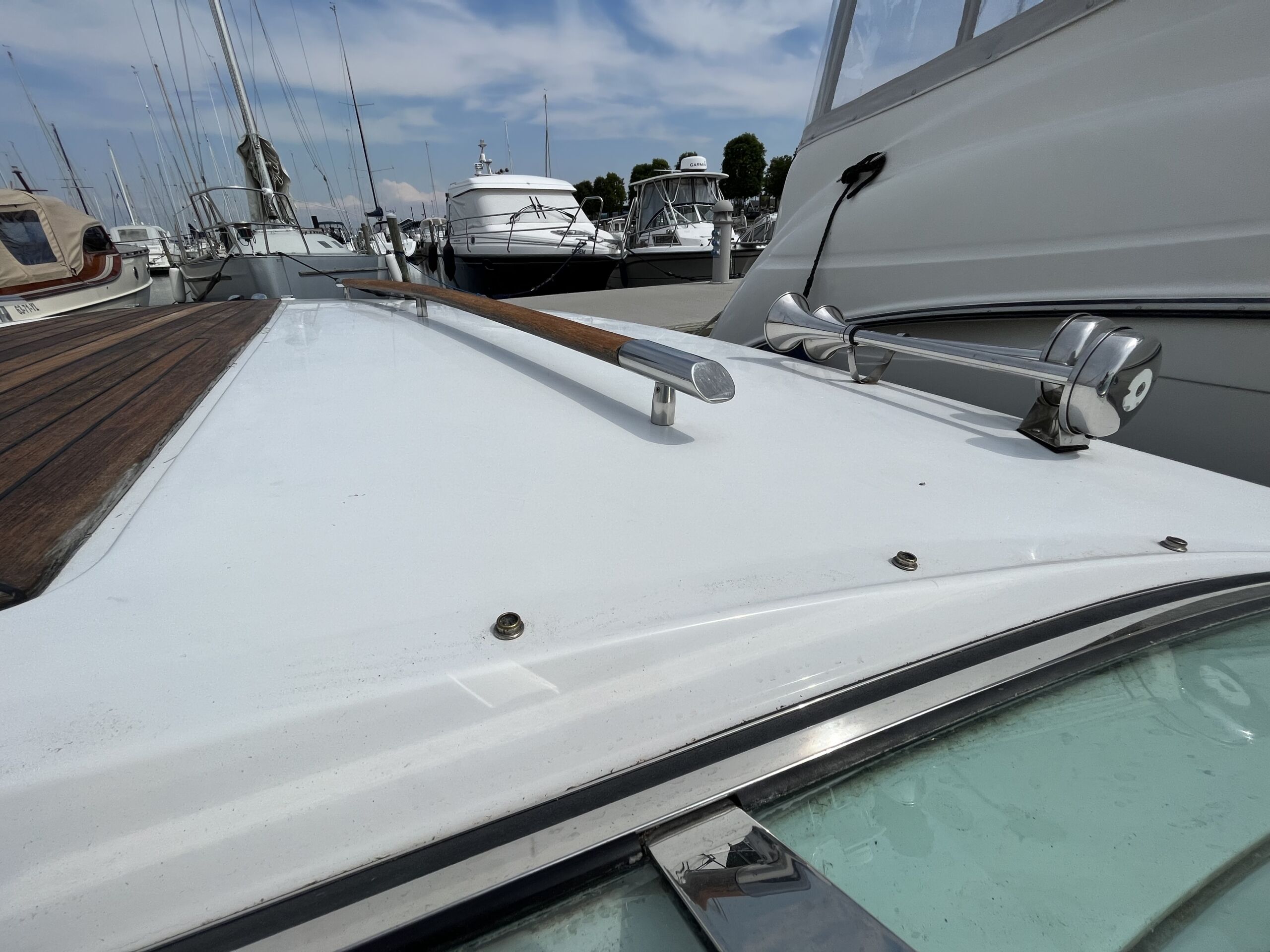 Båden er blevet løbende vedligeholdt hos K.K.E. Motorer i Skovshoved. Der er skiftet manifold og knæ samt transom. Kontakte ShipShape Bådsalg for yderligere information om denne dejlige båd.