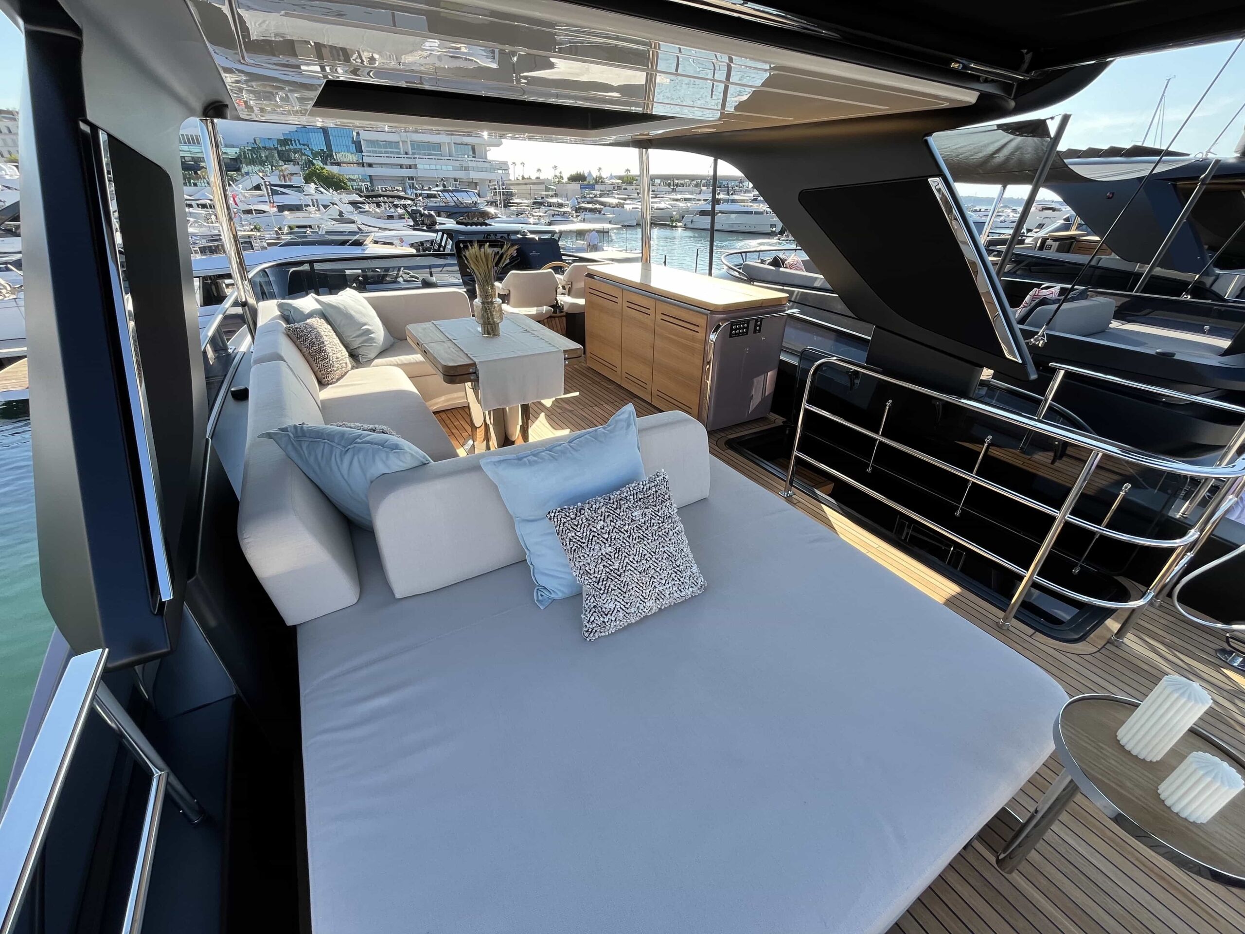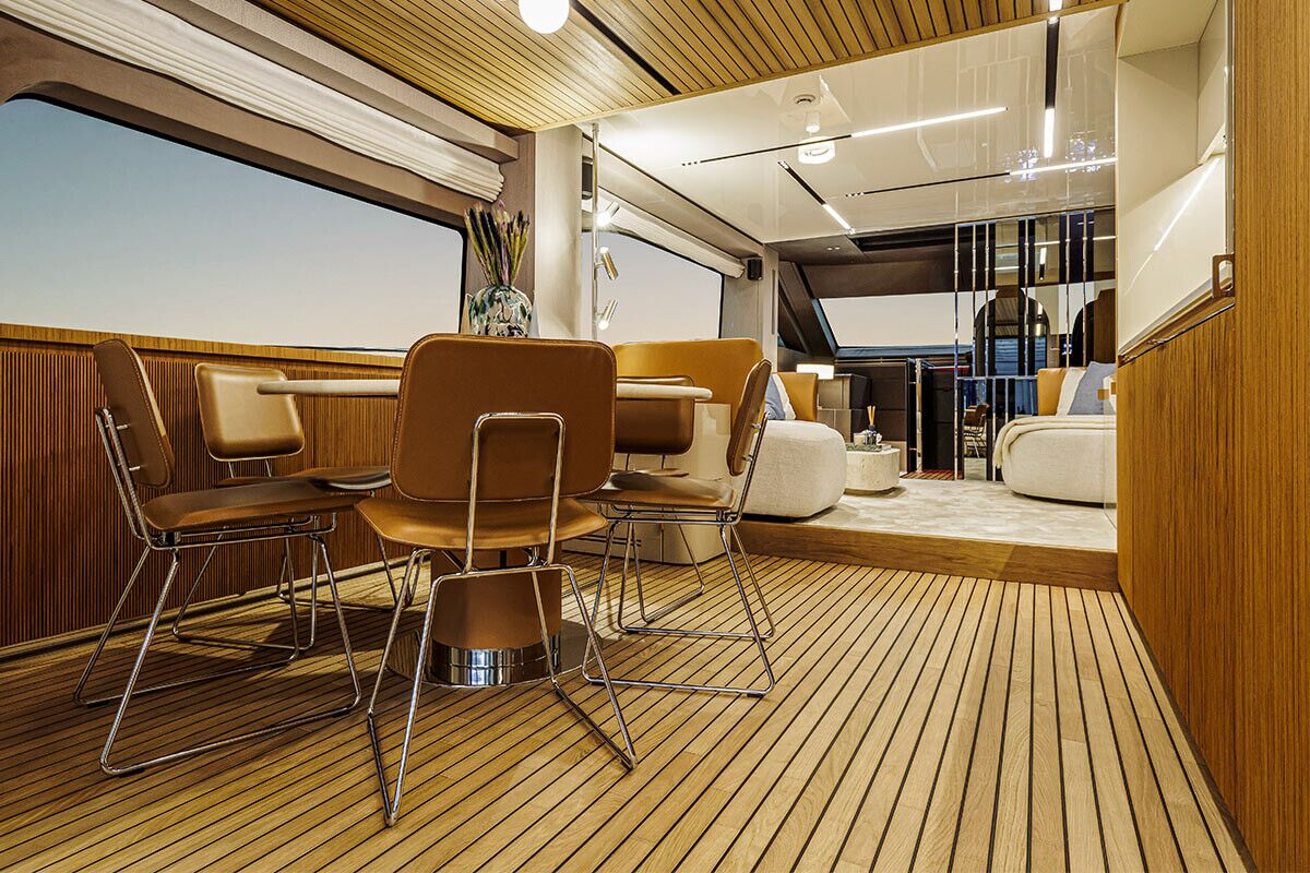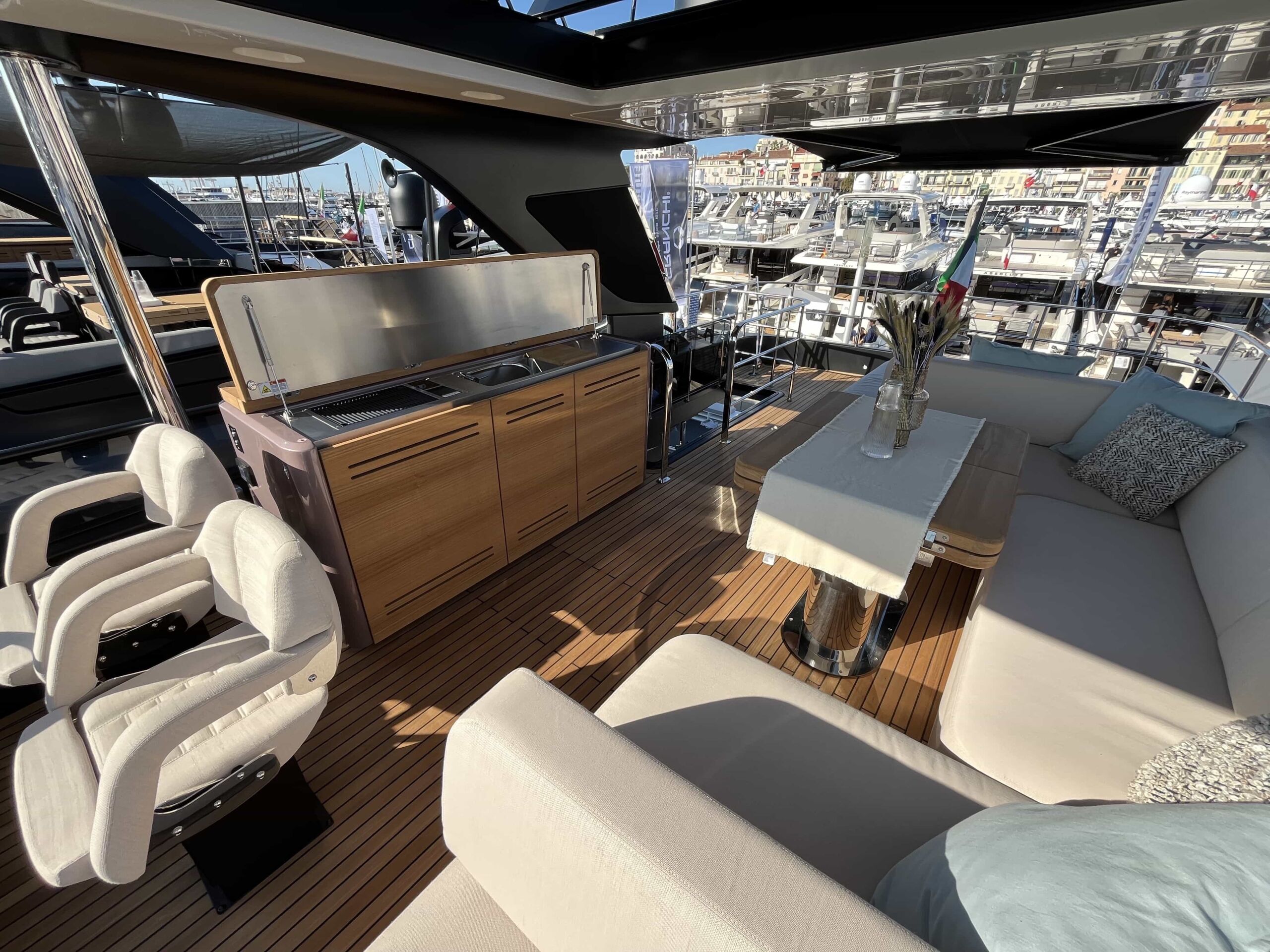 Komforten er uovertruffen. Den store og rummelig flybridge med stor og lækker wetbar giver god mulighed til ophold, spisning og solbadningsområde.