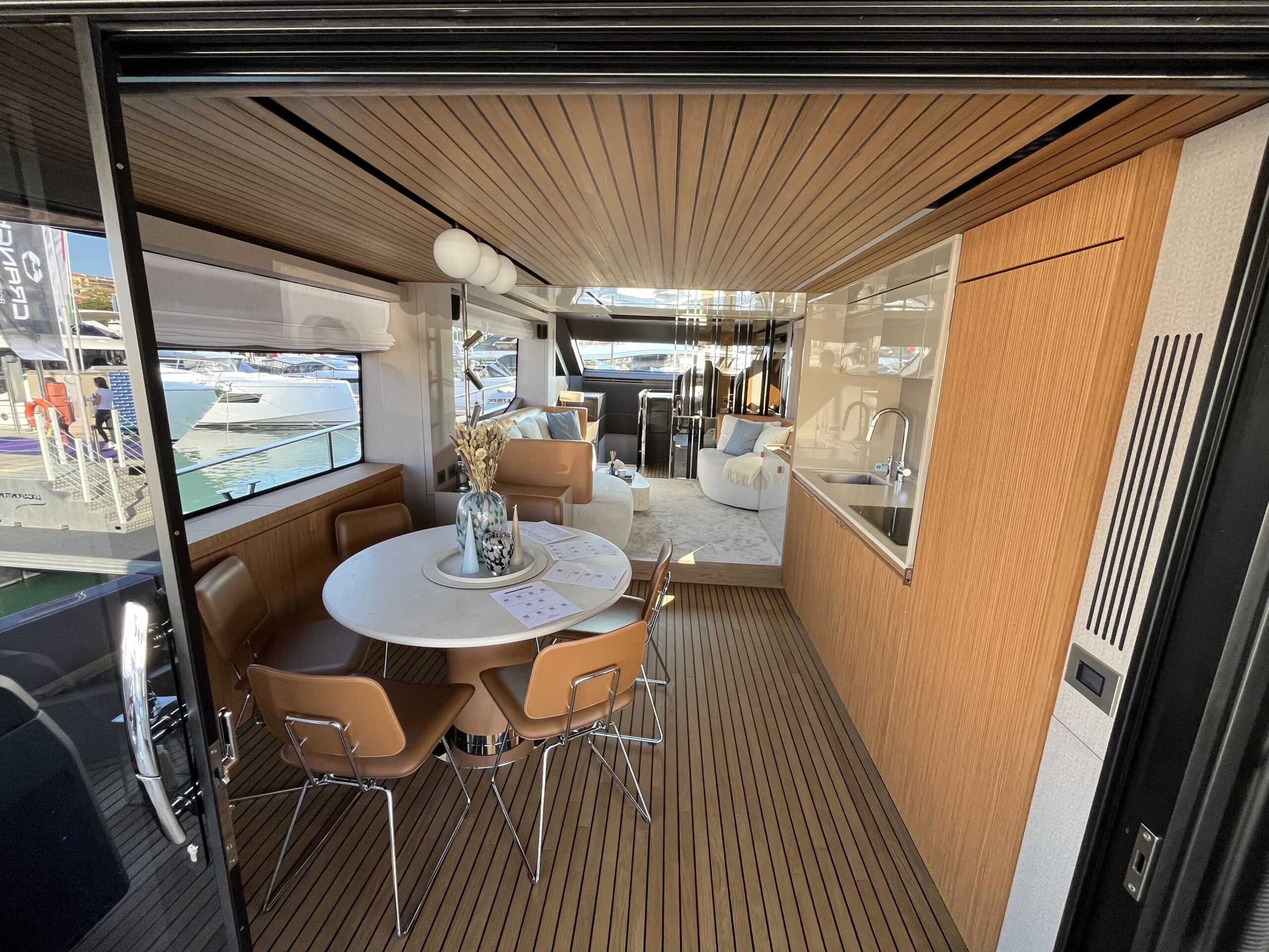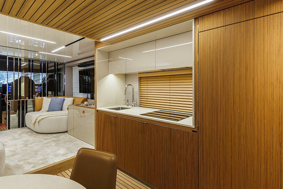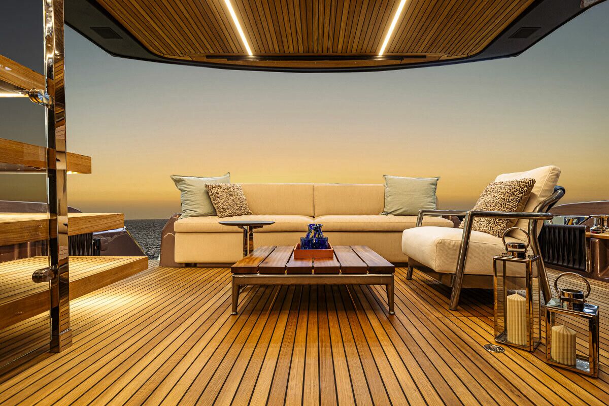 Komforten er uovertruffen. Den store og rummelig flybridge med stor og lækker wetbar giver god mulighed til ophold, spisning og solbadningsområde.