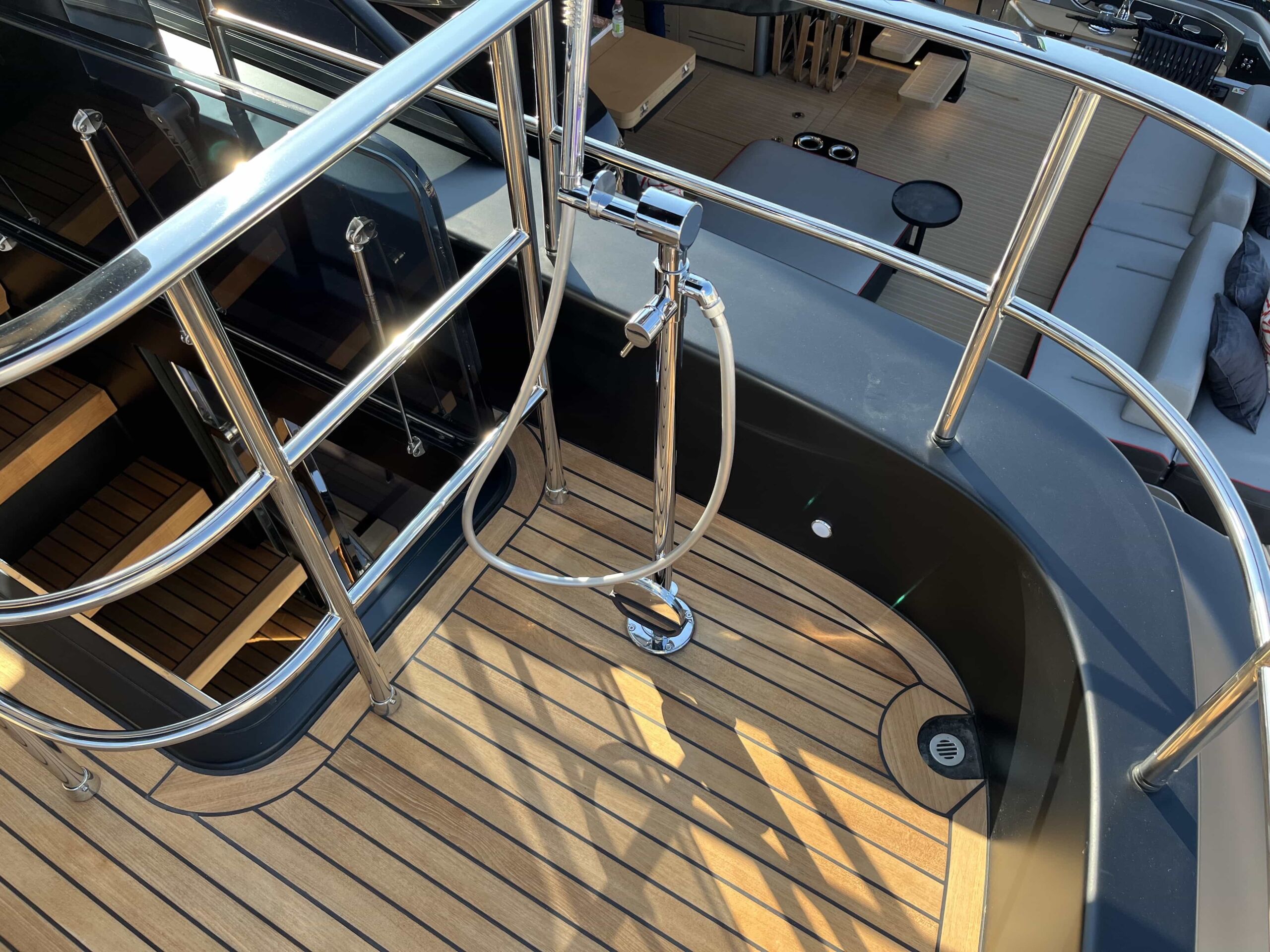 - Teakdæk i cockpit og på badeplatform