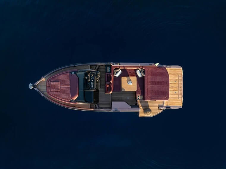 Båden byder på et imponerende cockpitlayout, hvor socialt samvær og funktionalitet går hånd i hånd. Det rummelige solområde agter, den fleksible lounge og det elegante førerområde giver optimale forhold for både afslapning, sejlads og vandsport. Materialerne er nøje udvalgt for deres kvalitet, holdbarhed og æstetik, så du får en luksusoplevelse, der kan mærkes i hver eneste berøring.