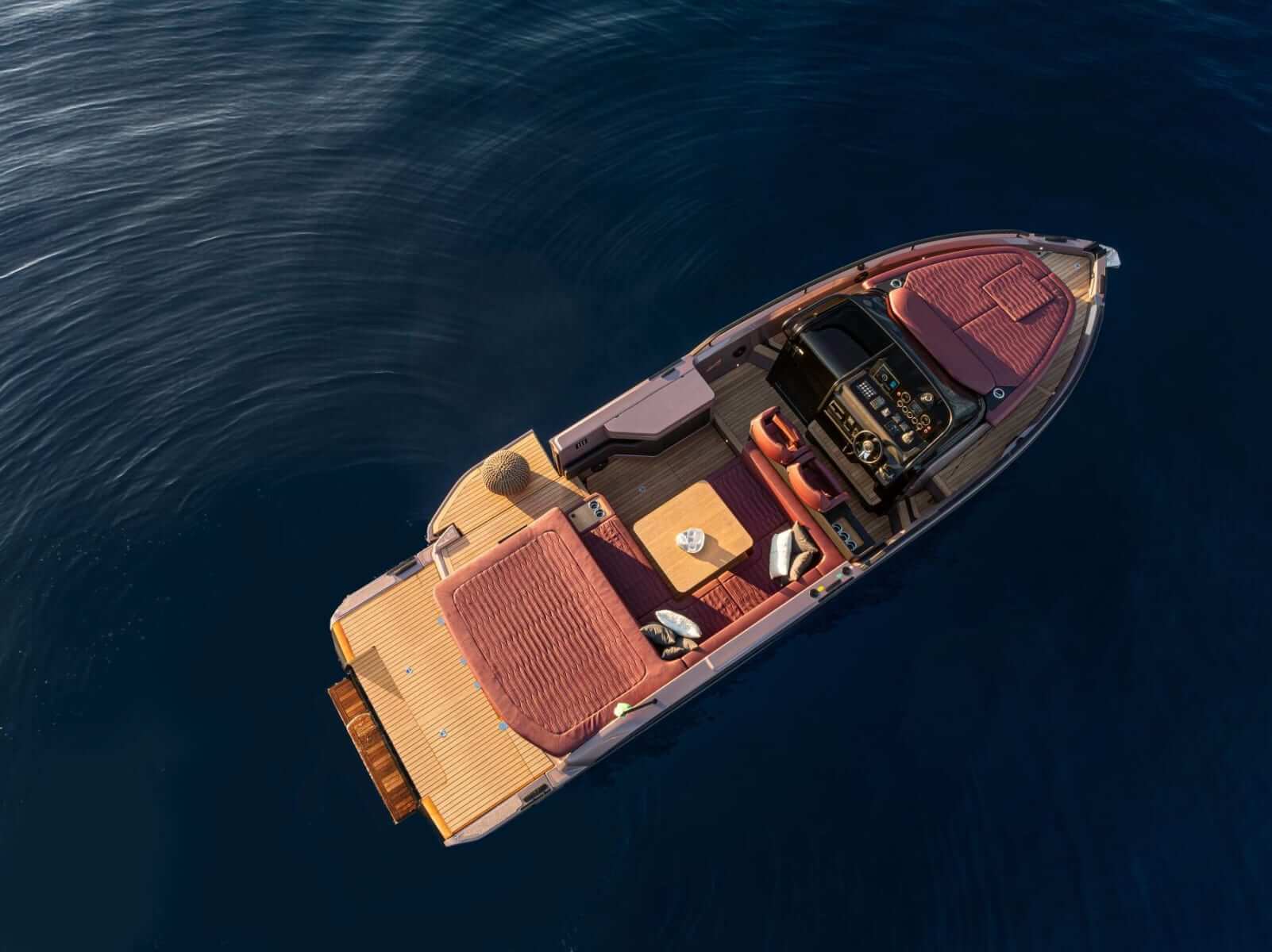 Båden byder på et imponerende cockpitlayout, hvor socialt samvær og funktionalitet går hånd i hånd. Det rummelige solområde agter, den fleksible lounge og det elegante førerområde giver optimale forhold for både afslapning, sejlads og vandsport. Materialerne er nøje udvalgt for deres kvalitet, holdbarhed og æstetik, så du får en luksus oplevelse, der kan mærkes i hver eneste berøring.