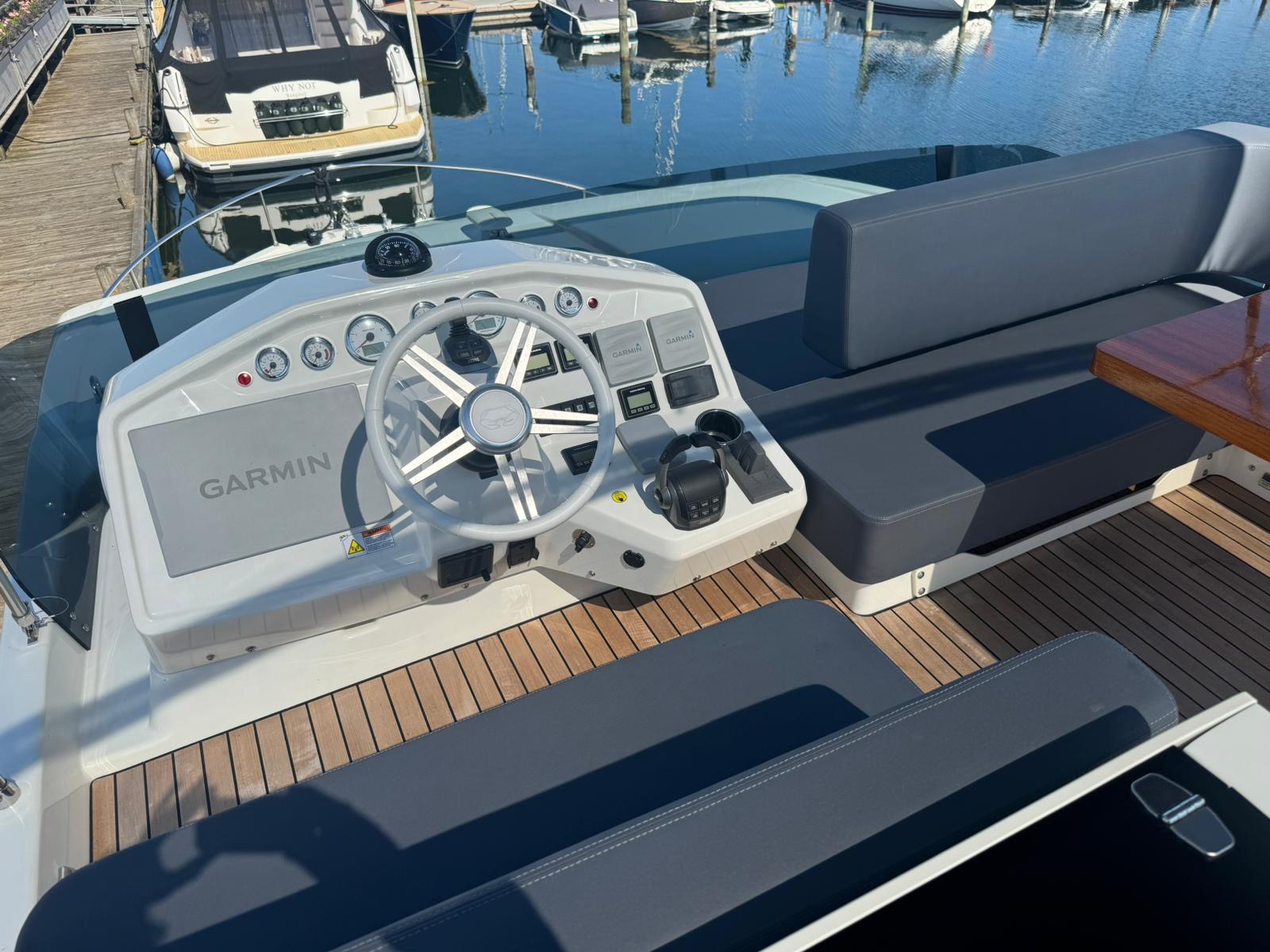 An almost NEW one owner Cranchi T43 Eco Trawler LD from 2022 in the beautiful Azzurro Infinito color with Volvo Penta IPS. The boat is equipped with Volvo Penta Assistant Docking and DPS (Digital Positioning System) and variable Sleipner bow thruster integrated with 16″ Garmin glass cockpit GPS. All this makes the boat one of the easiest to maneuver in the harbor in all kinds of weather whether you are alone or with guests.