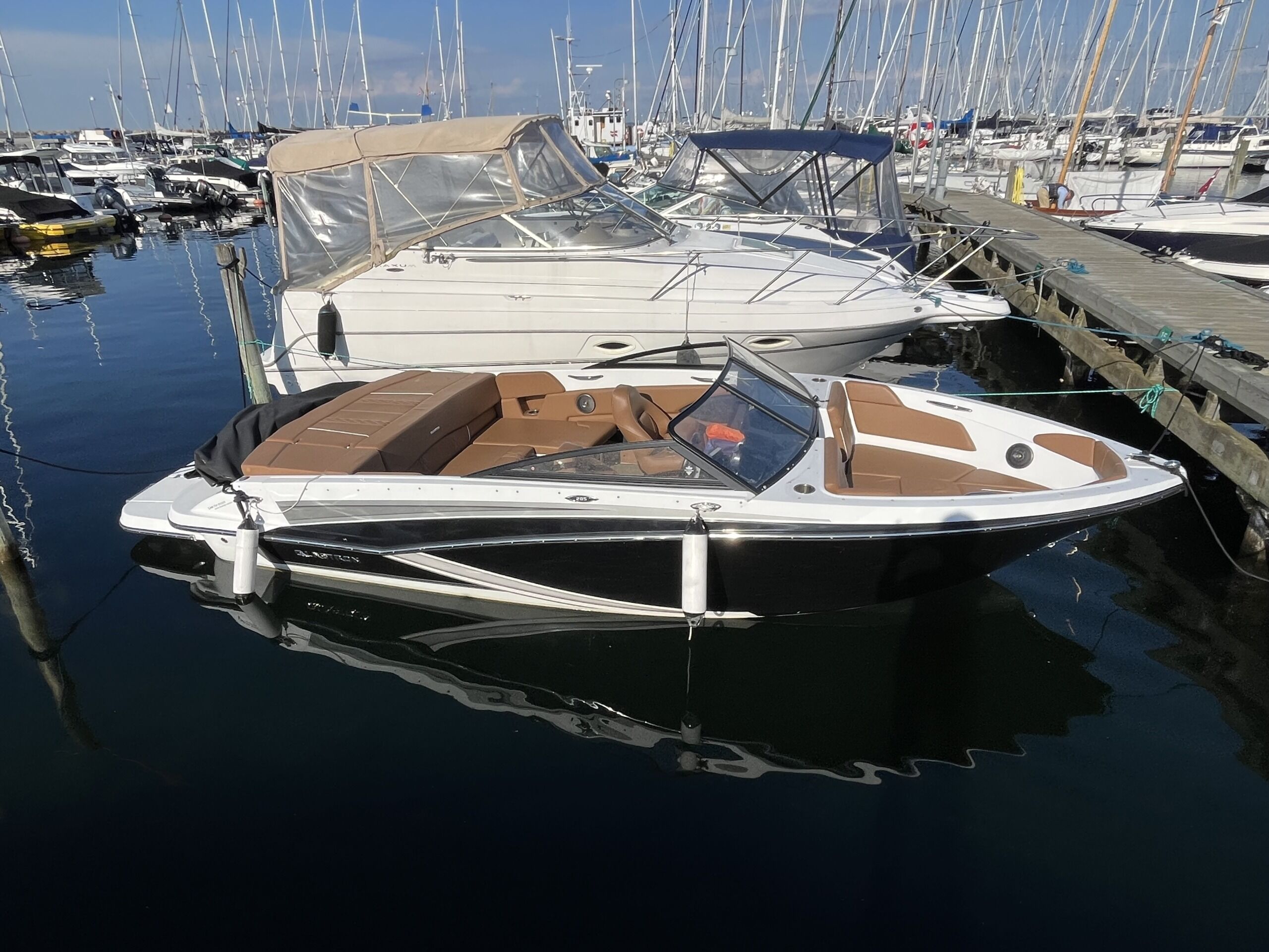 Mange lækre detaljer som cognac farvede hynder, Bucket seats, Soldæk, Chaiselong og masser af stuverum. Så her er altså tale om en båd der appellerer til den sporty familie, der godt kan lide action og fart. Når det er sagt indbyder denne båd også til stille sejlads med familie og venner, idet båden er godkendt til at må sejle med hele 7 personer. Dette er den ultimative sommer bowrider, til dig der er en levemand/dame, med sans for lækre detaljer og et sporty udtryk. Trailer kan tilkøbes.