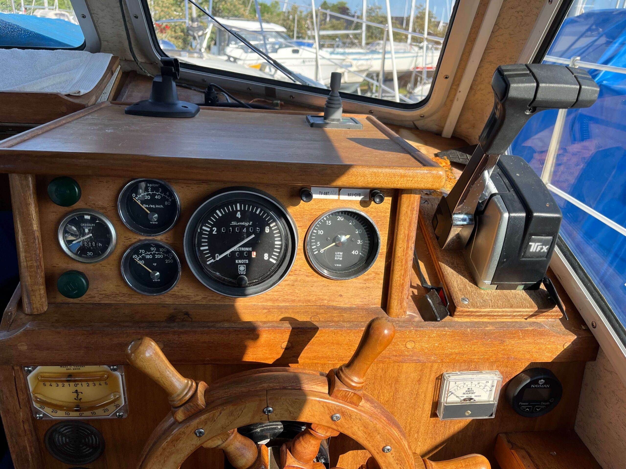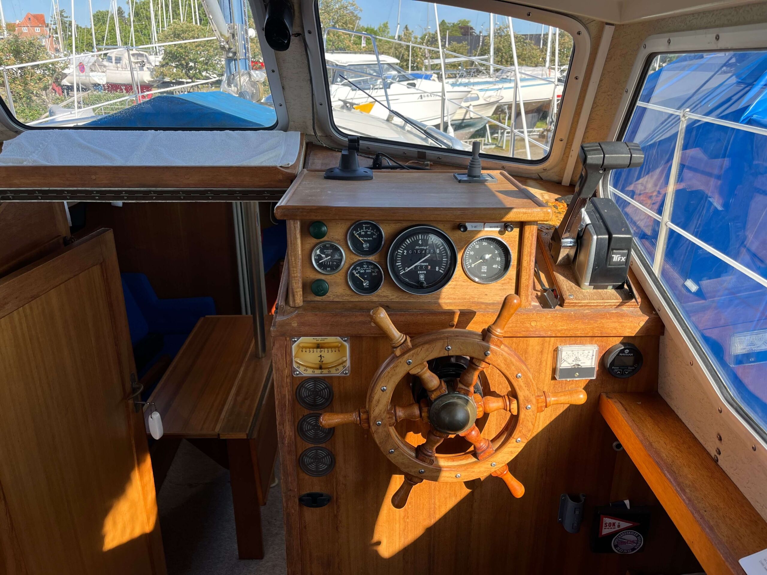 Pæn og vedligeholdt LM 27. Mark II med metal vinduesrammer. Båden er udstyret med varme og bovpropel.