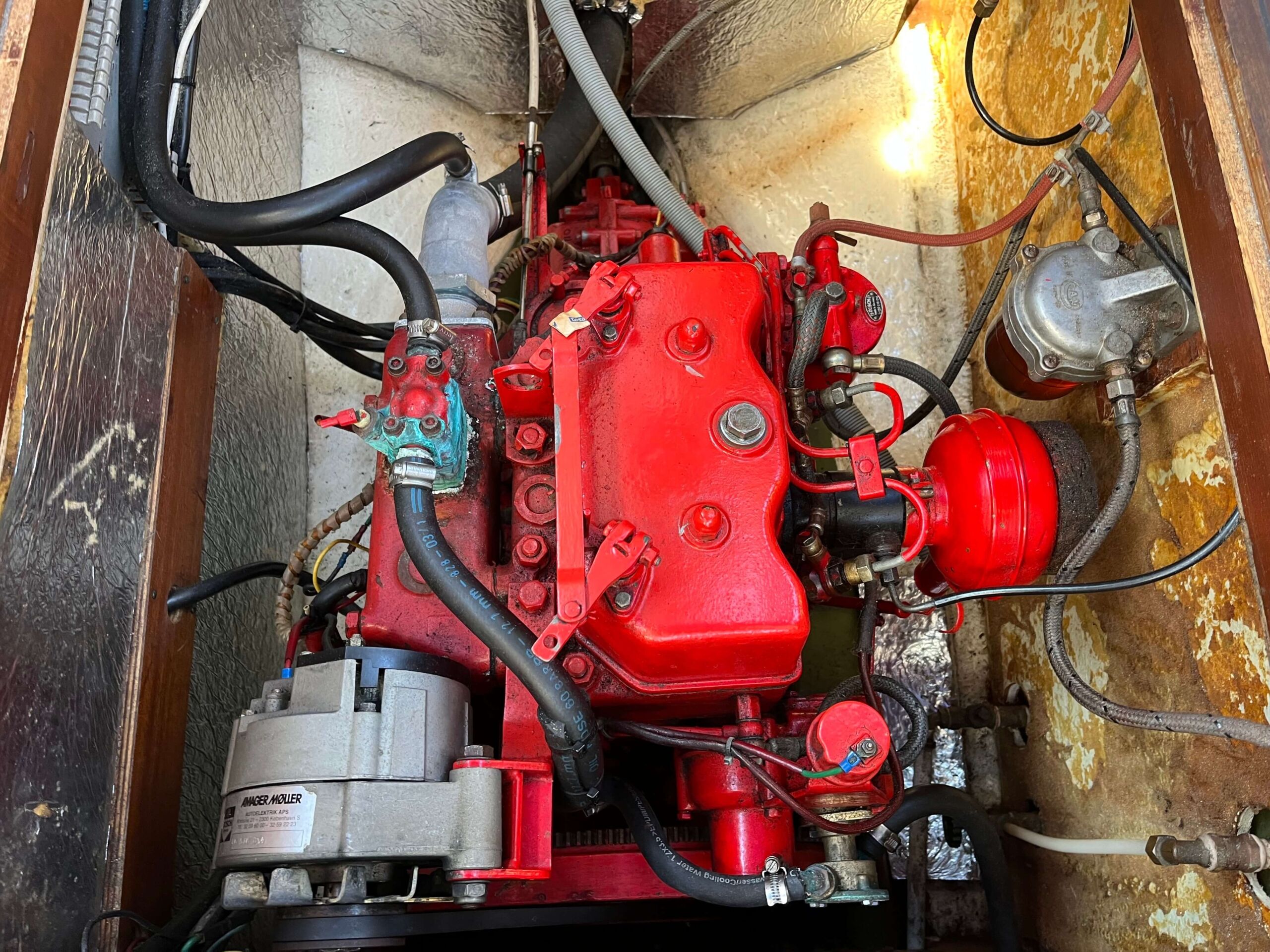Motoren er løbende blevet serviceret og udstødningen er udskiftet i 2022.