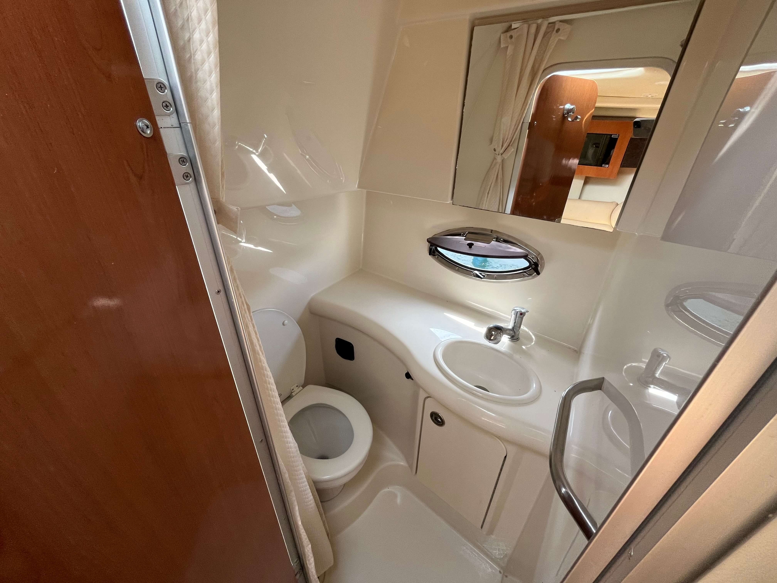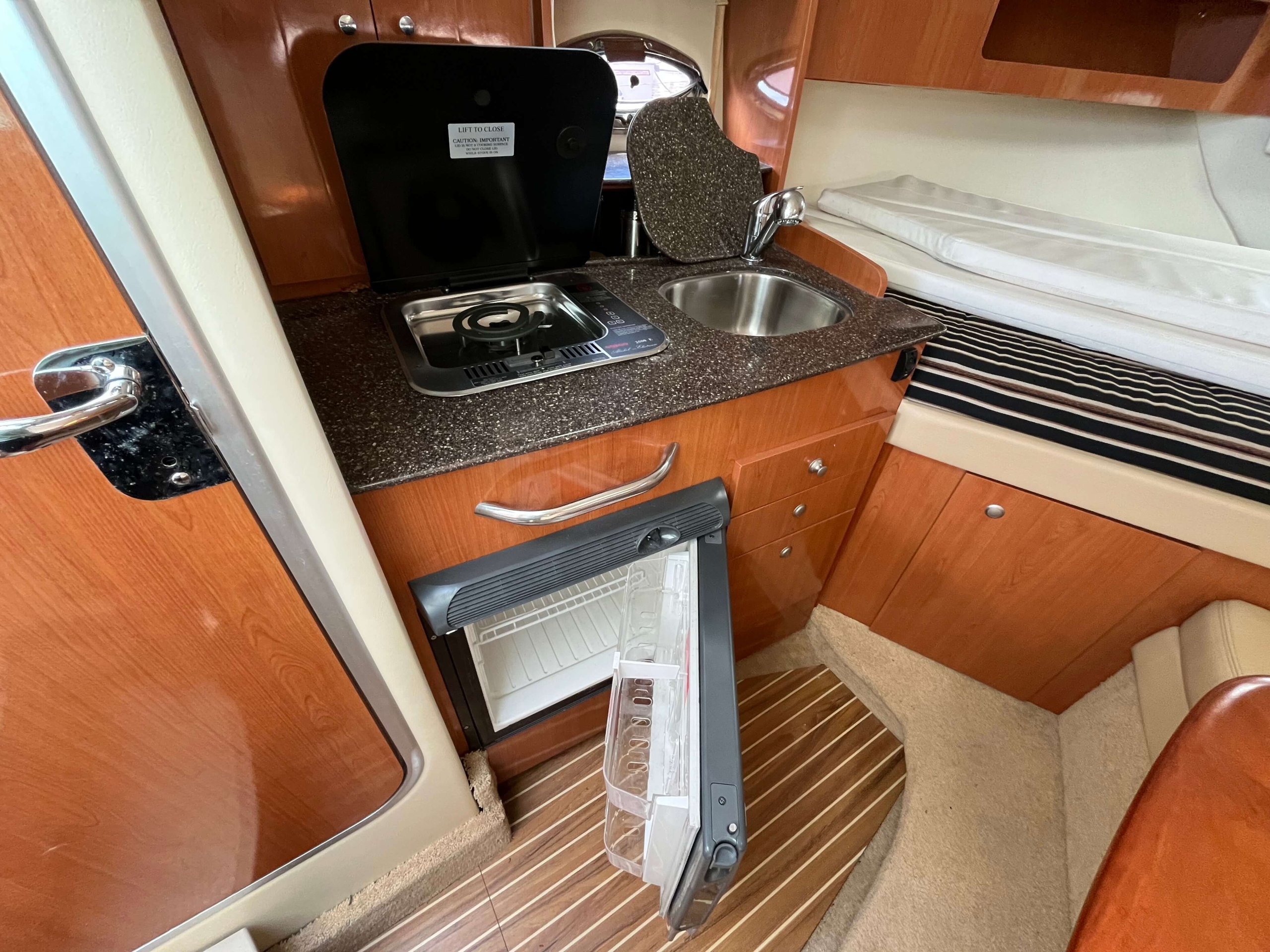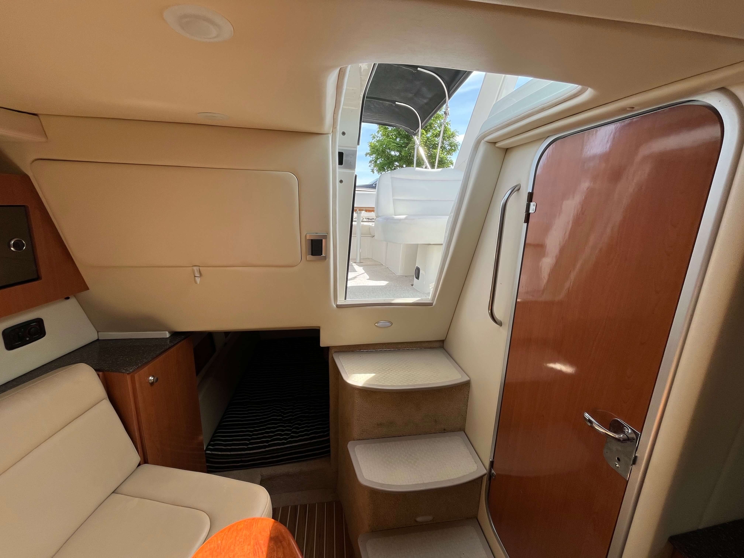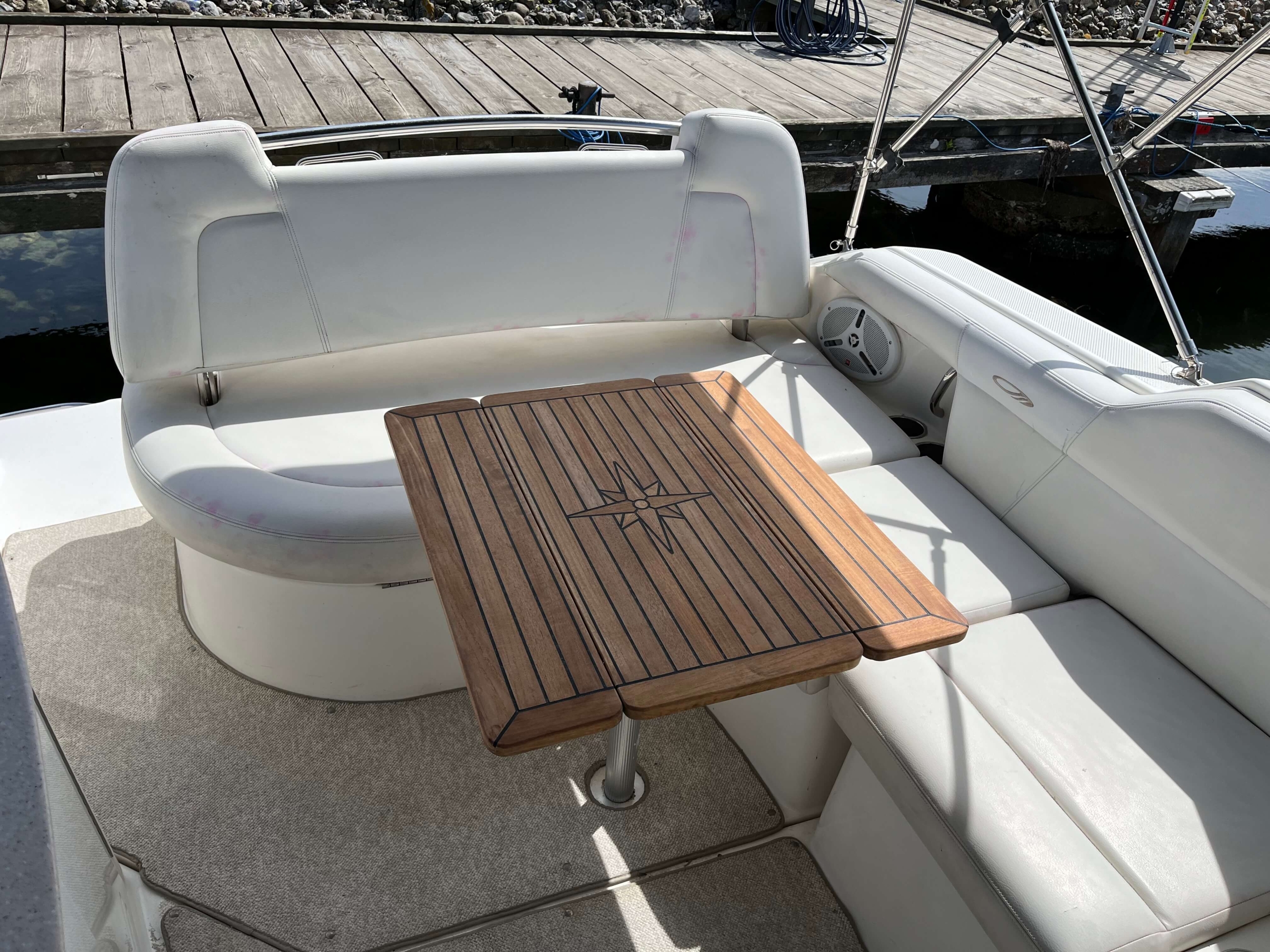 Det rummelige cockpit er ideelt til underholdning, og interiøret byder på alle bekvemmeligheder for en komfortabel weekendtur. Her findes wetbar bestående af grill, vask og køleskab, L-formet siddeområde omkring teakord. Ryglænet agter kan lægges ned så man får en solseng. Der er god plads fortil med dobbelt førersæde samt dobbelt sæde i bagbord til gæster. Badeplatform med stige og bruser.