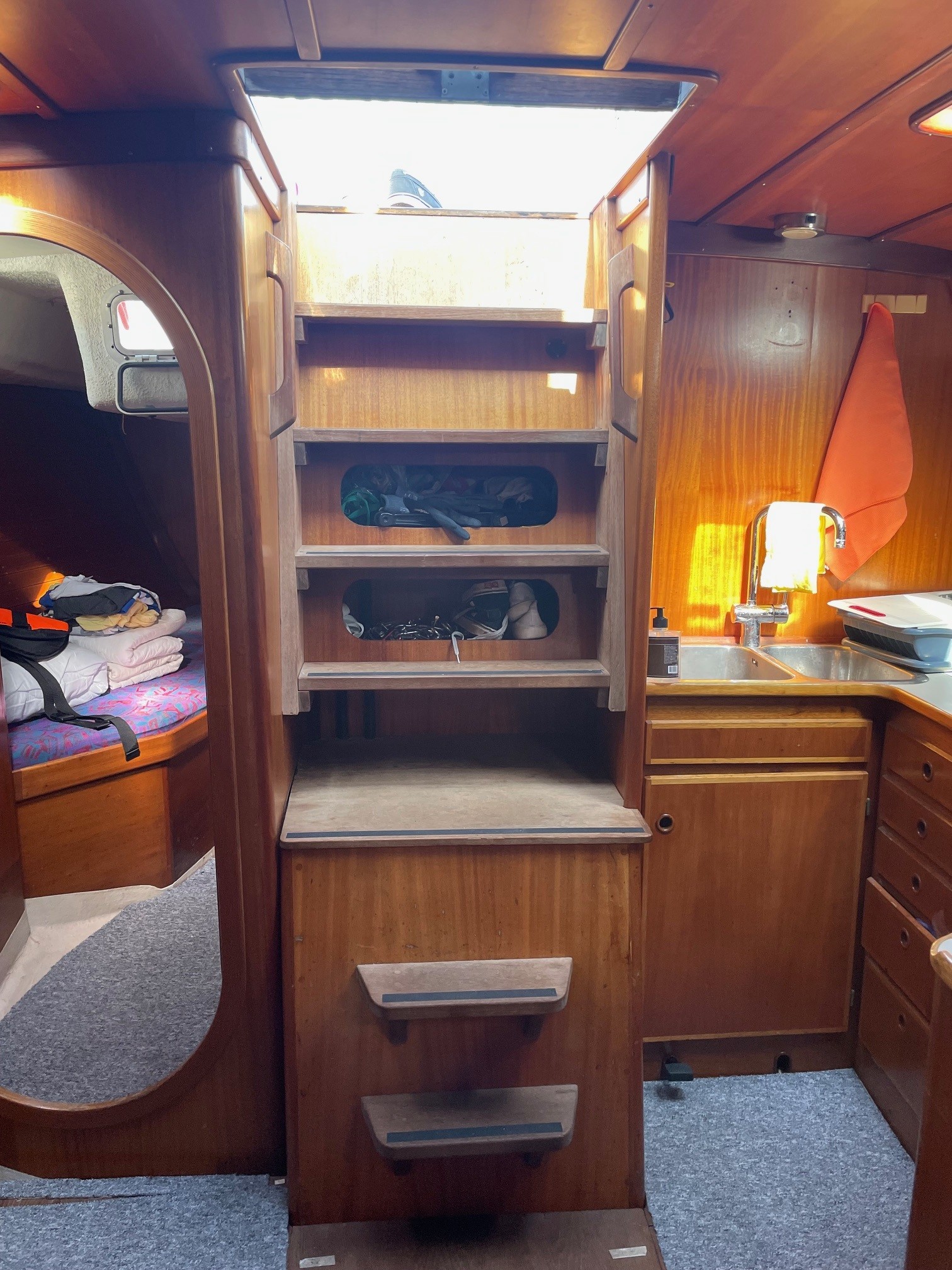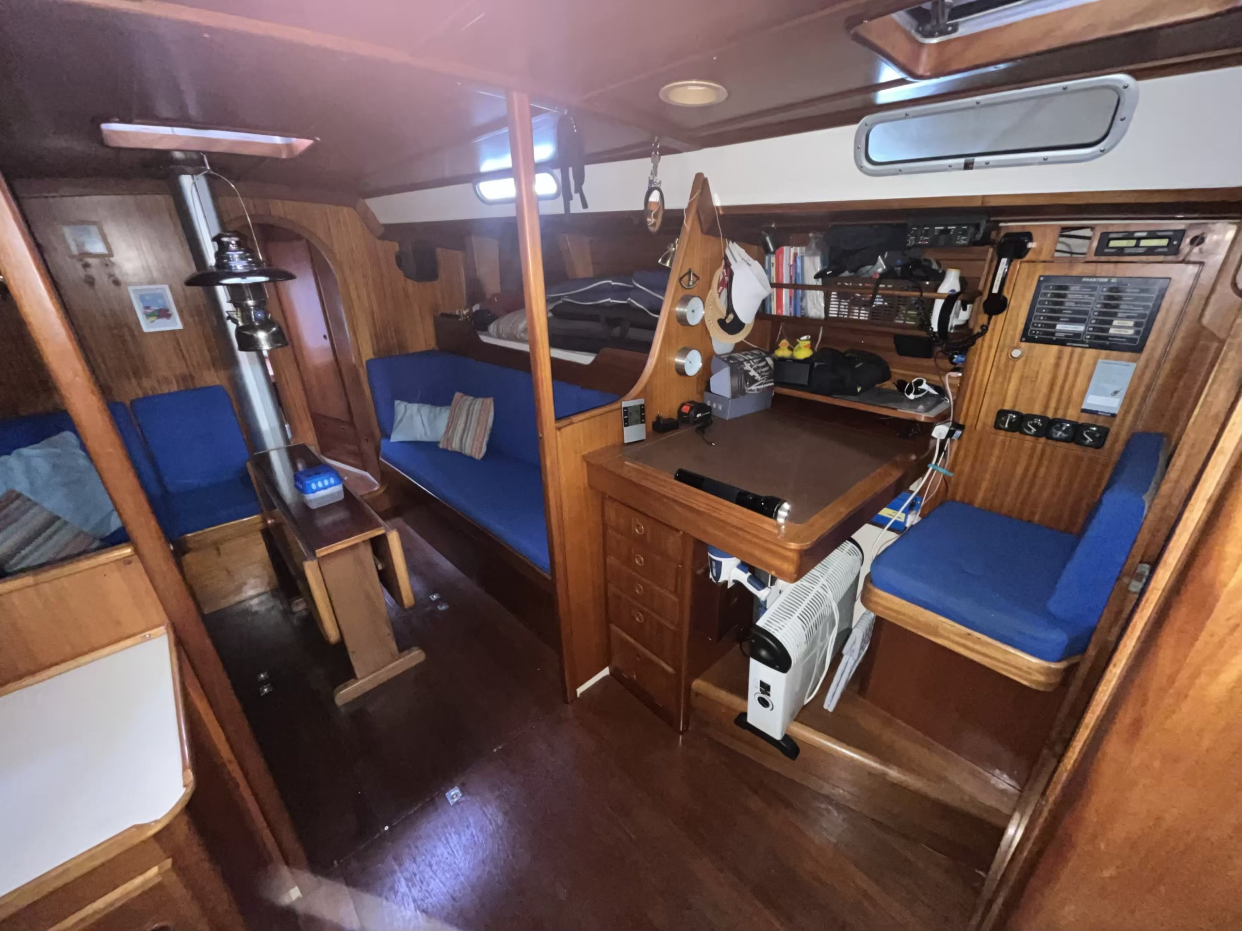Båden byder på rummelighed, gode sejlegenskaber og et sikkert dæk, der gør den velegnet til både familie sejlads og længere ture. Den store salon rummer spiseplads, pantry og navigationsplads – alt sammen udført i klassisk stil med fokus på funktionalitet og kvalitet. Denne Phantom 42 fremstår som et solidt udgangspunkt for den sejler, der ønsker en klassisk, søstærk og rummelig sejlbåd med potentiale.